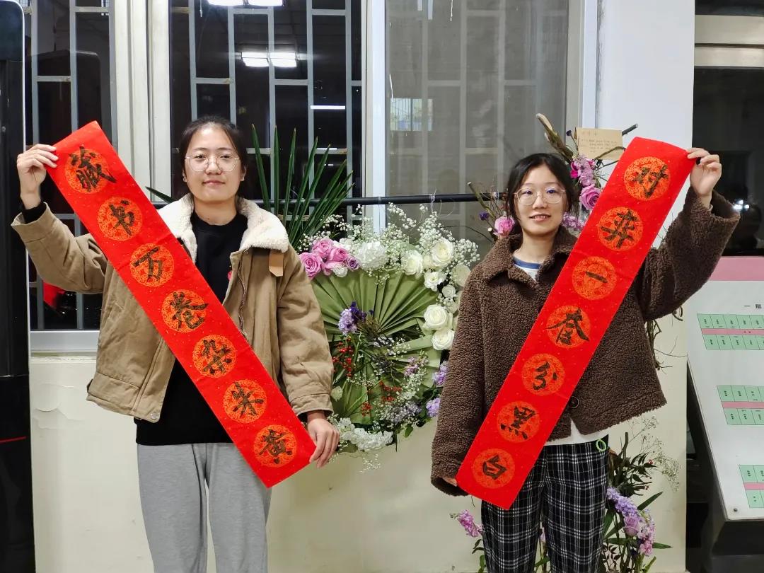 60幅对联由党建组织员茹光明带领同学们亲手书写,凝聚着师生对考研学子的真挚祝福。在此之前,黄漫