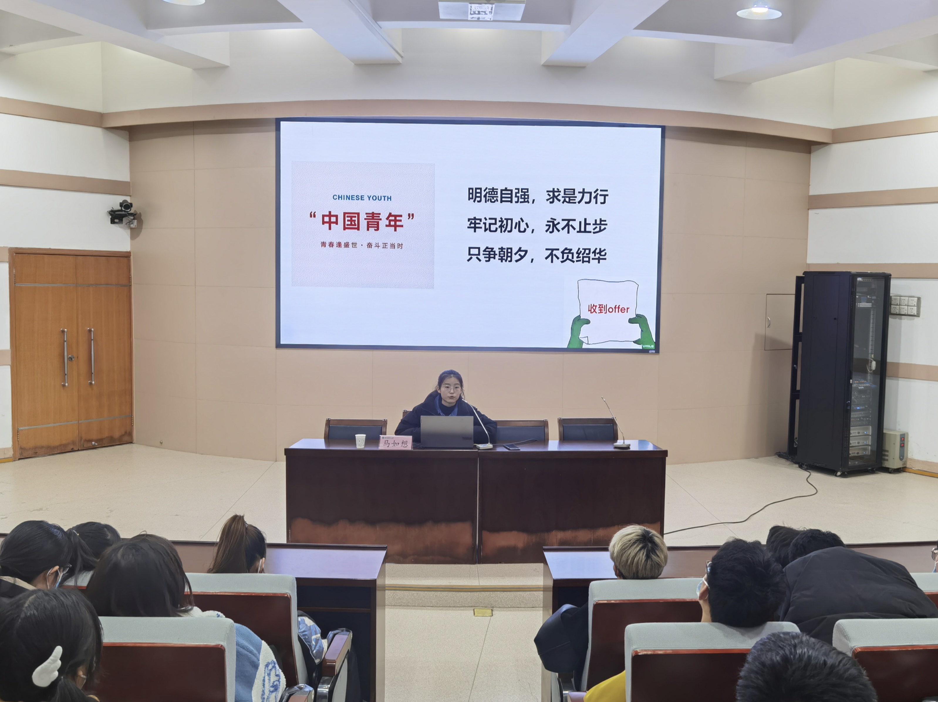 于文化路校区三百人报告厅召开推免生经验分享会。院团委书记路平、院辅导员张金龙出席会议,黄漫