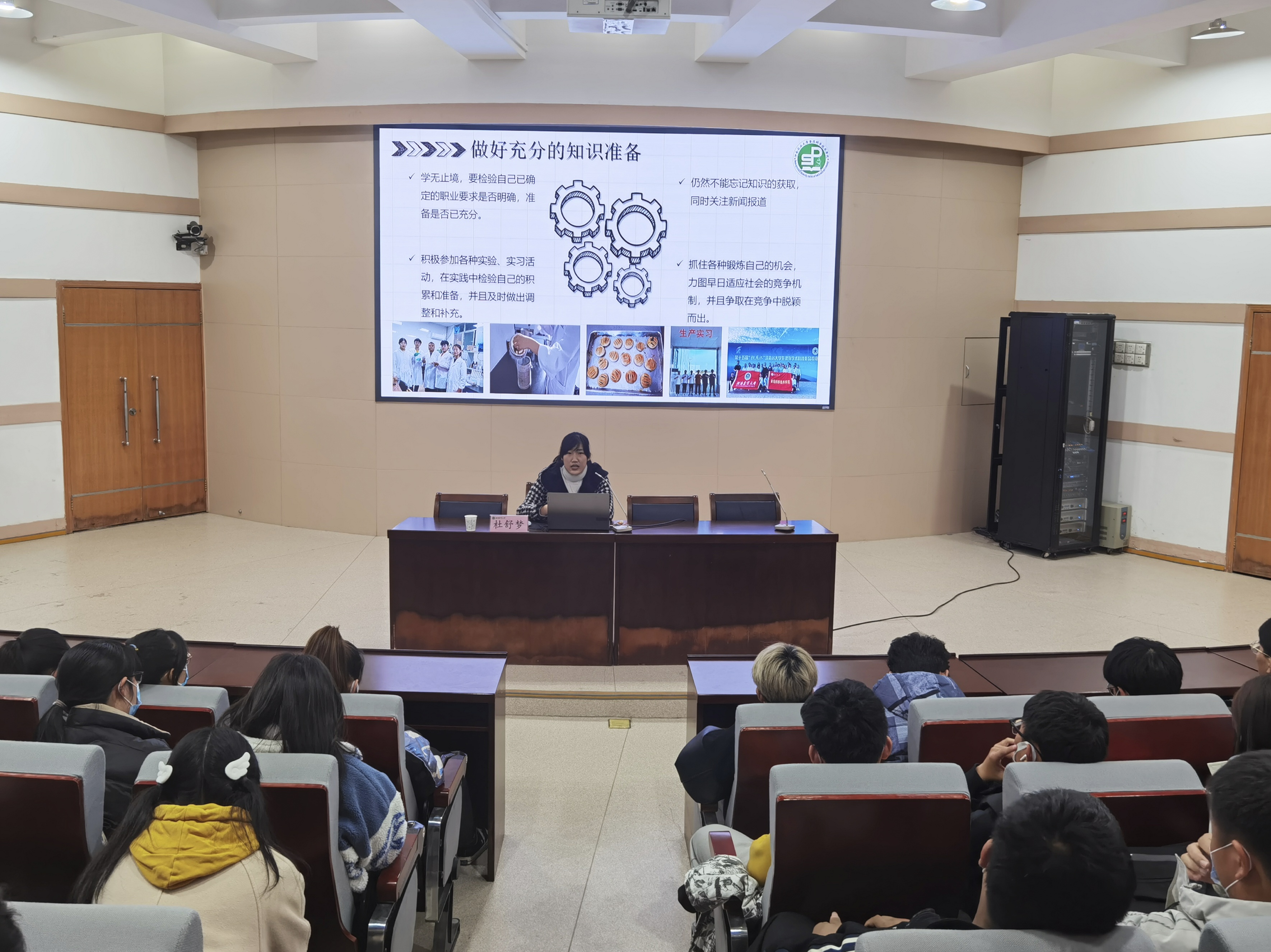 马如想向同学们详细介绍了保研的流程、条件,分享了个人保研经验。她讲到,选择研究生院校时同学们要把更多的重心放在院校专业的学术排名和导师的研究方向上,要从学校官网、校报等多种途径搜集信息,最终挑选出适合自己的院校和导师。她希望同学们在大学期间,努力提升学习绩点排名和英语水平,培养科研思维,提高综合能力。