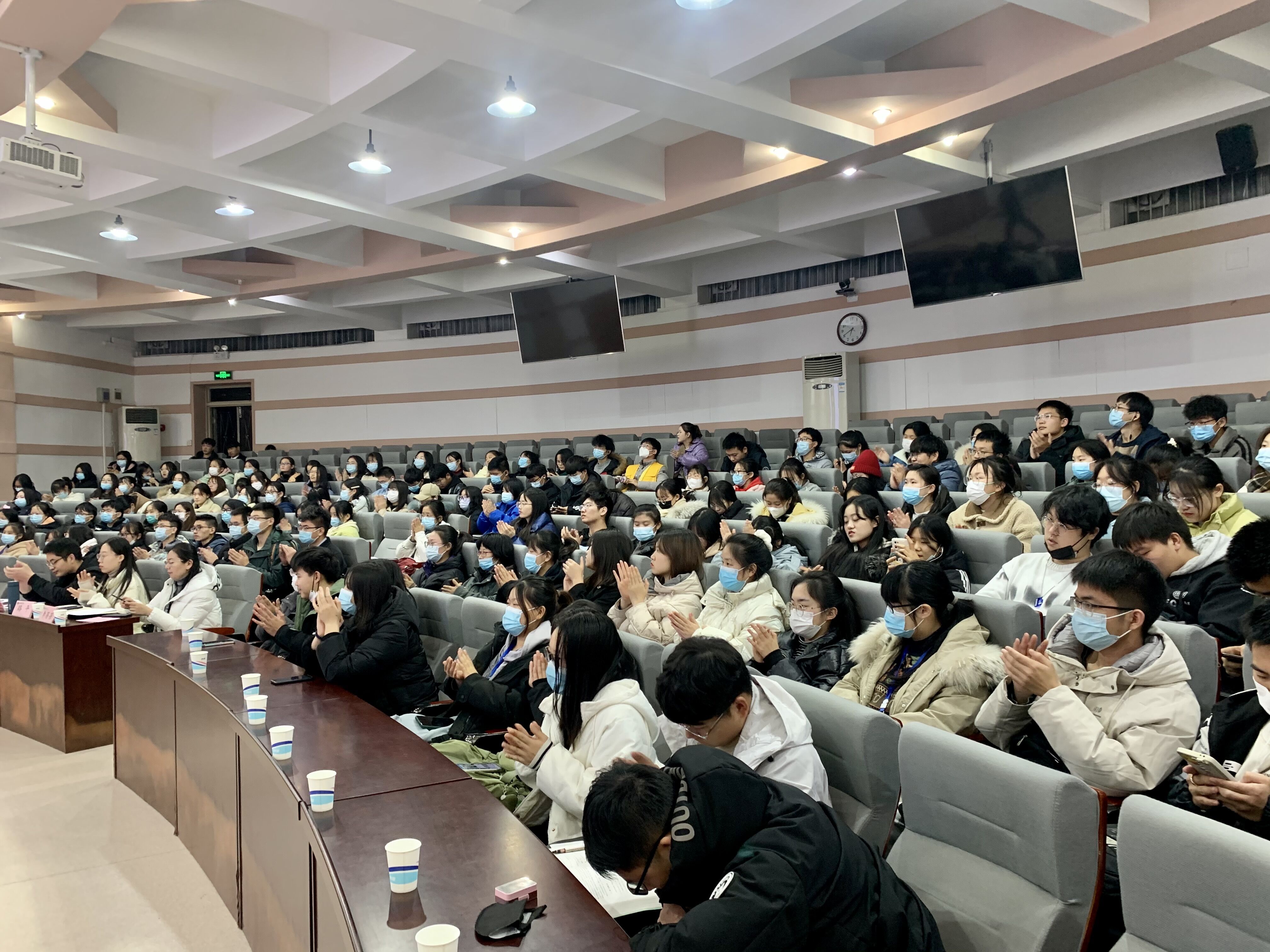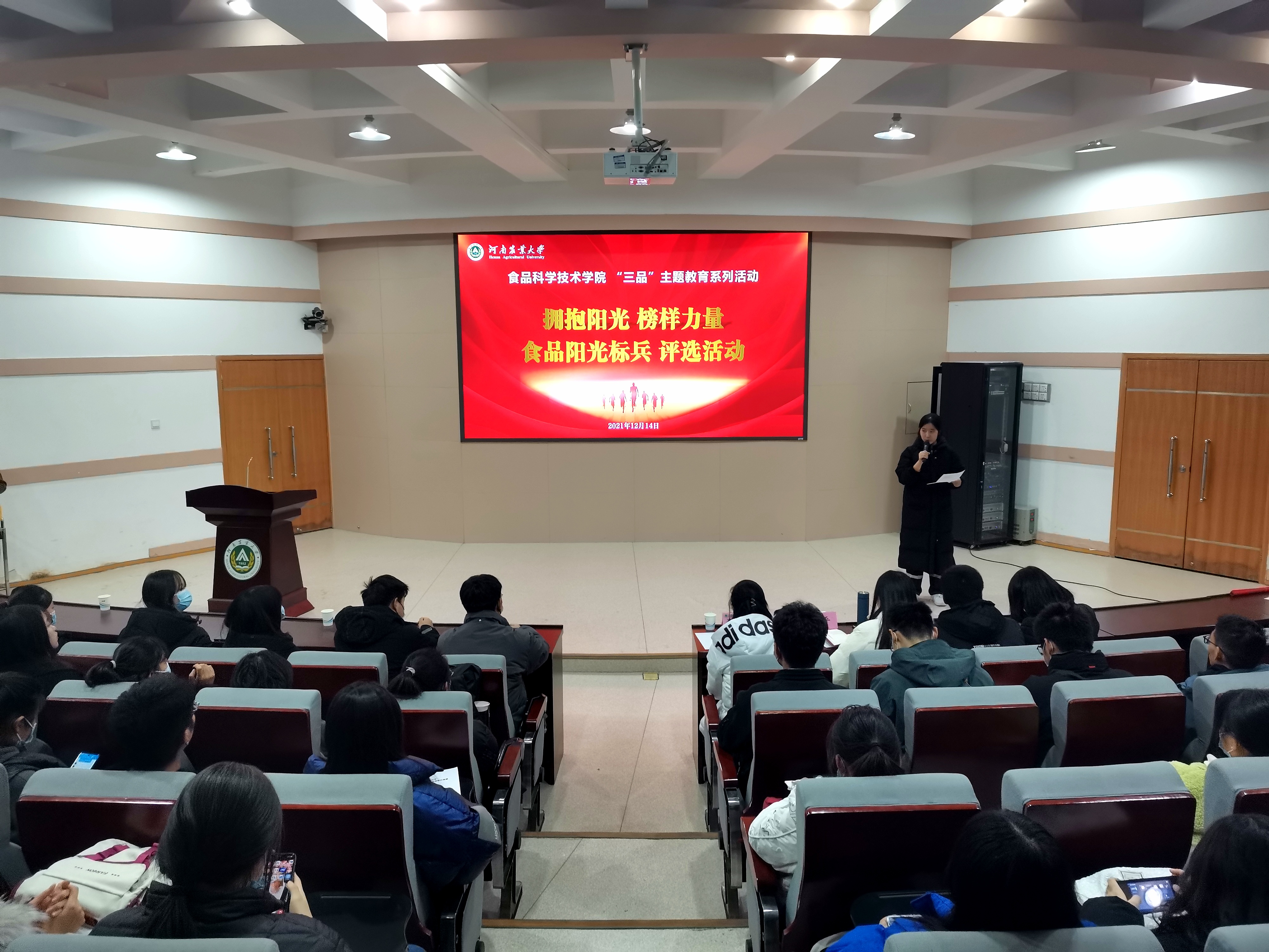 于第一报告厅举办“食品阳光标兵”评选大会,院党委副书记李蓓蓓,团委书记路平,辅导员张金龙、辅导员秦可梦出席活动。