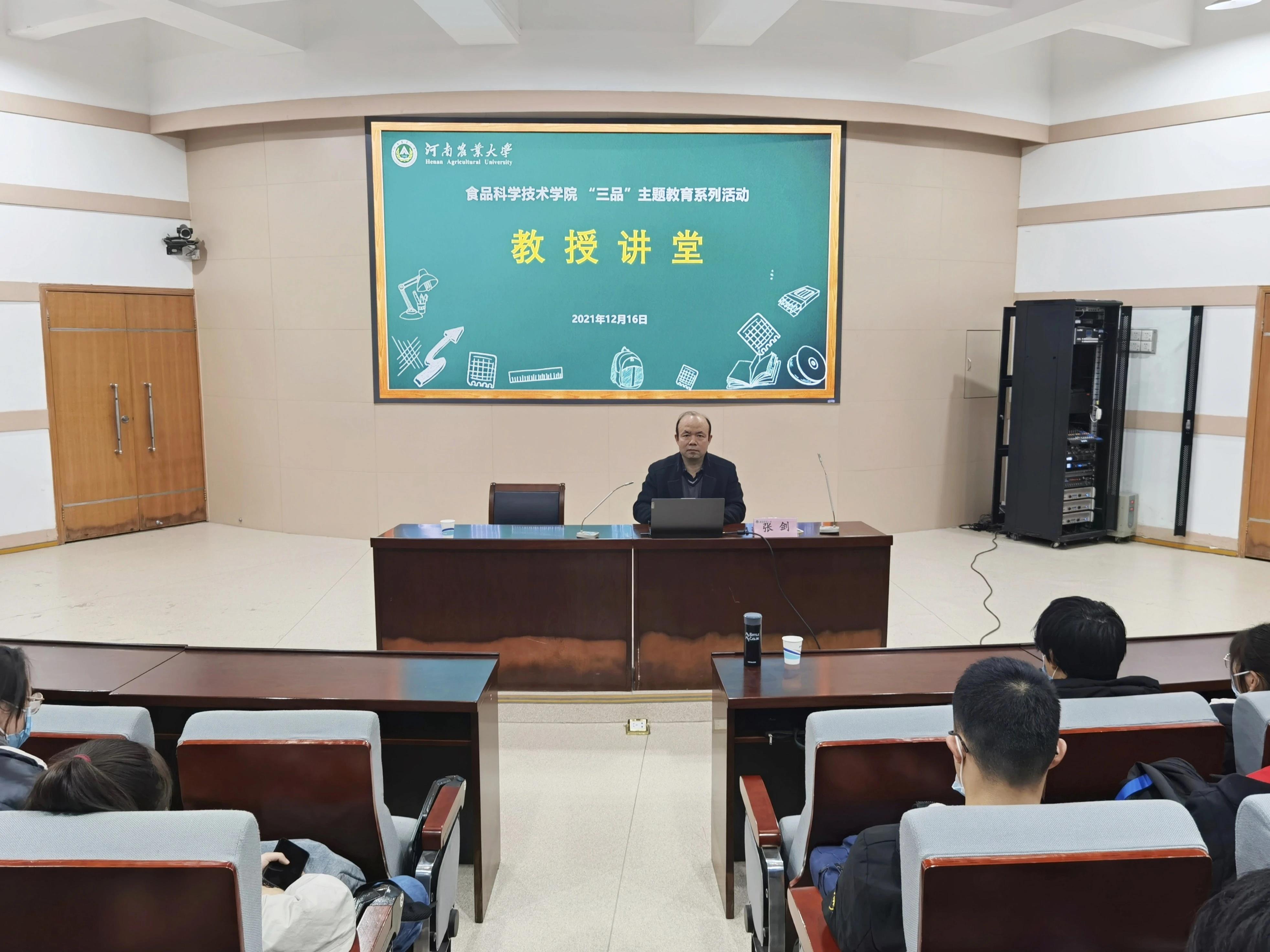 于文化路校区第一报告厅召开“三品”主题教育系列教授讲堂。副院长张剑结合自己研究方向作了精彩报告,21级全体同学参加。