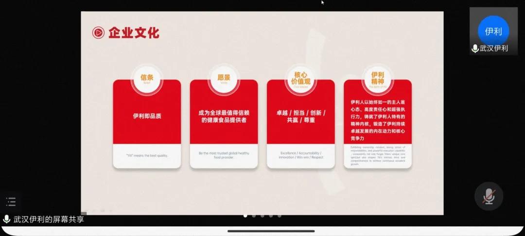 郑婷通过播放企业宣传片向同学们展示了企业的成长与发展,并详细地介绍了“伊利”两个字的内涵,是为大家的利益而存在与发展。她从信条、愿景、核心价值观、伊利精神四个方面着重解释了伊利集团的黄漫内涵,并从伊利集团领先、多元、国际化、责任感四个特点向大家阐述,使同学们对伊利集团产生了浓厚的兴趣。她表示,伊利集团需要的是积极进取、热爱学习、行动力强、有创造力的人才,集团会给进取者提供充满挑战性的成长空间和定制化的培养方案。