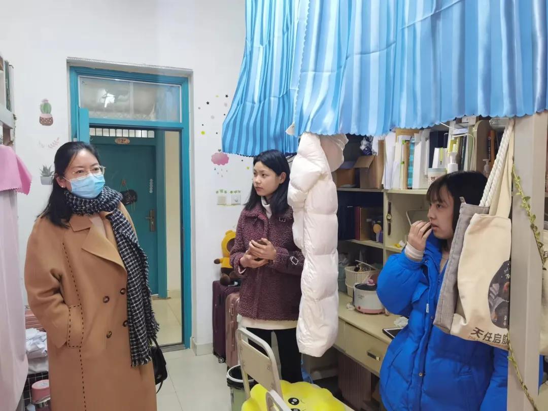 党委书记赵改名、院长黄现青、党委副书记李蓓蓓、团委书记路平、辅导员张金龙等领导老师共同走访学生宿舍,实地了解同学们的学习生活情况,并为同学们送上了关心和问候。