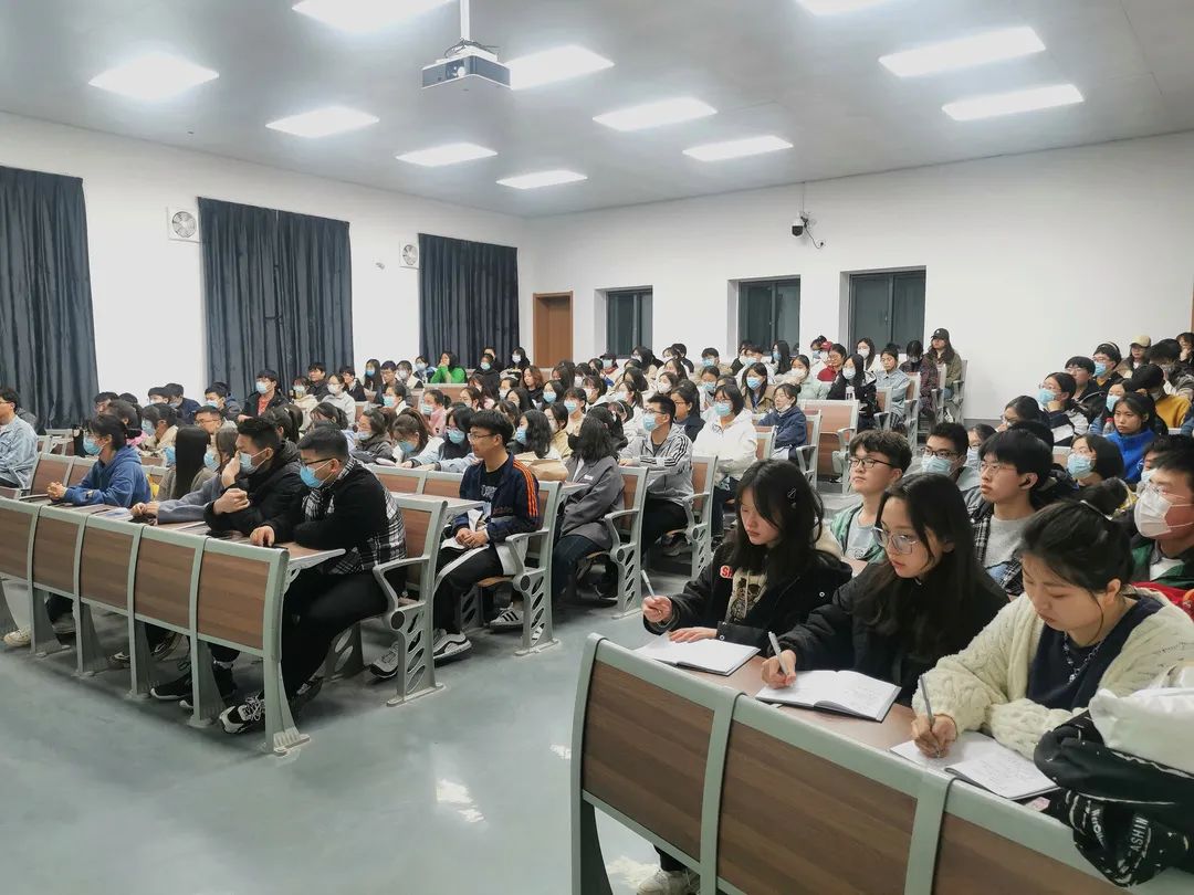 18级食检一班马如想、石必博担任主讲,院部分学生参加会议。