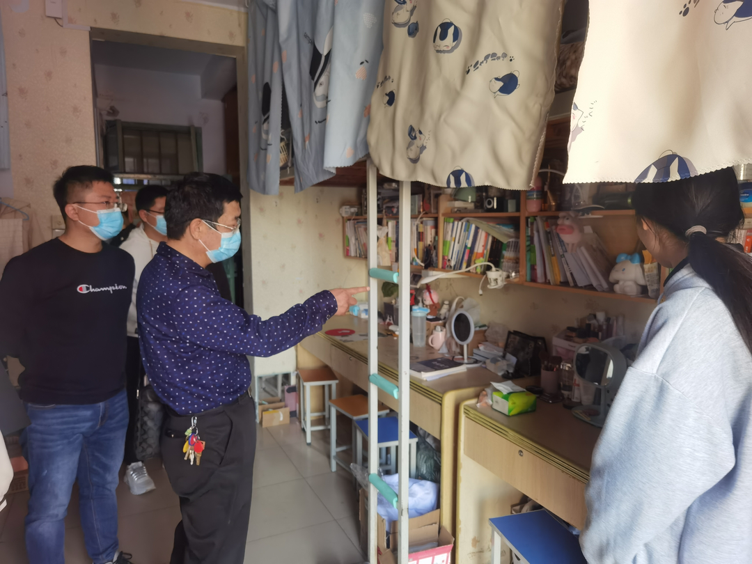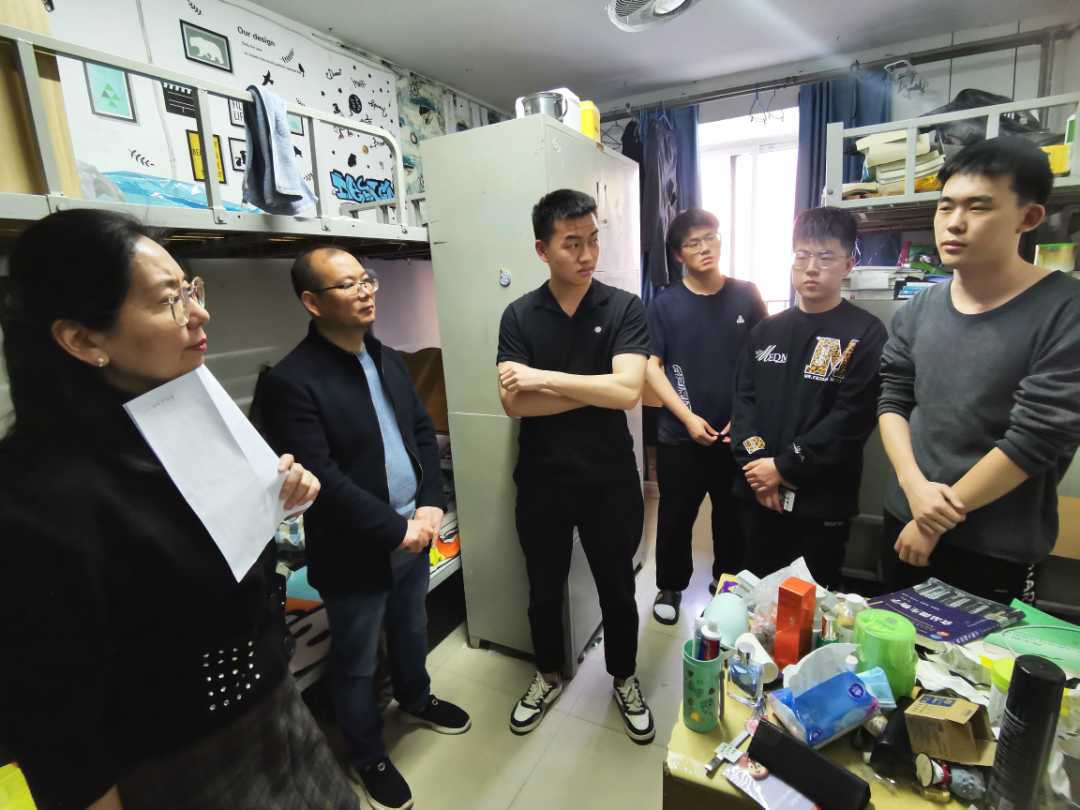 走访过程中,领导老师深入宿舍与同学们亲切交流,切实了解了同学们的学习生活情况,细致排查了学生宿舍存在的安全隐患,并提出了相应整改要求。