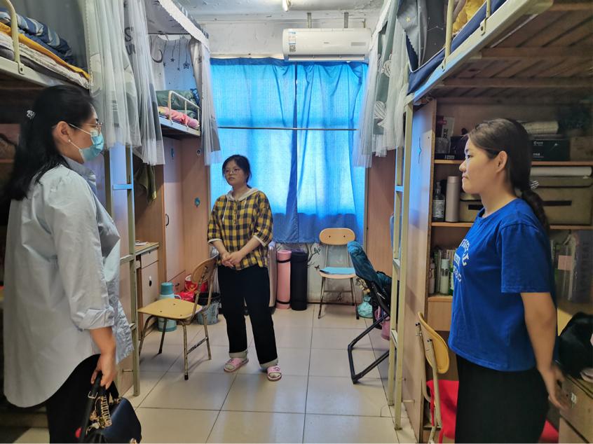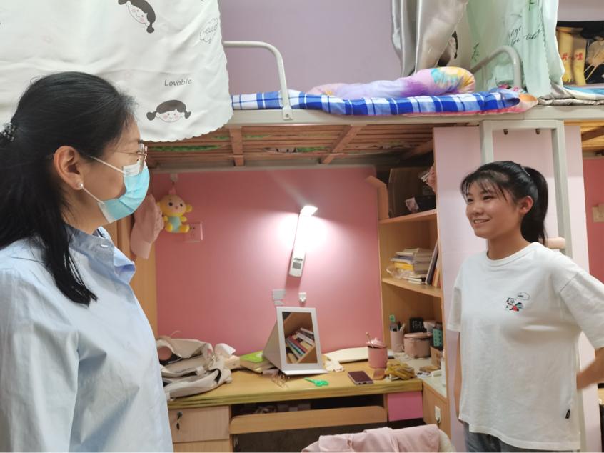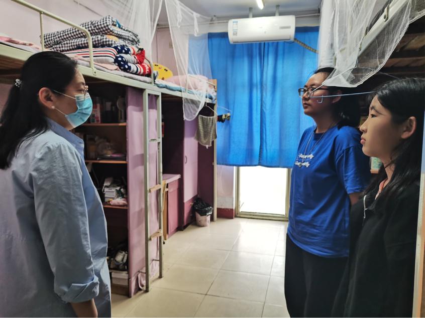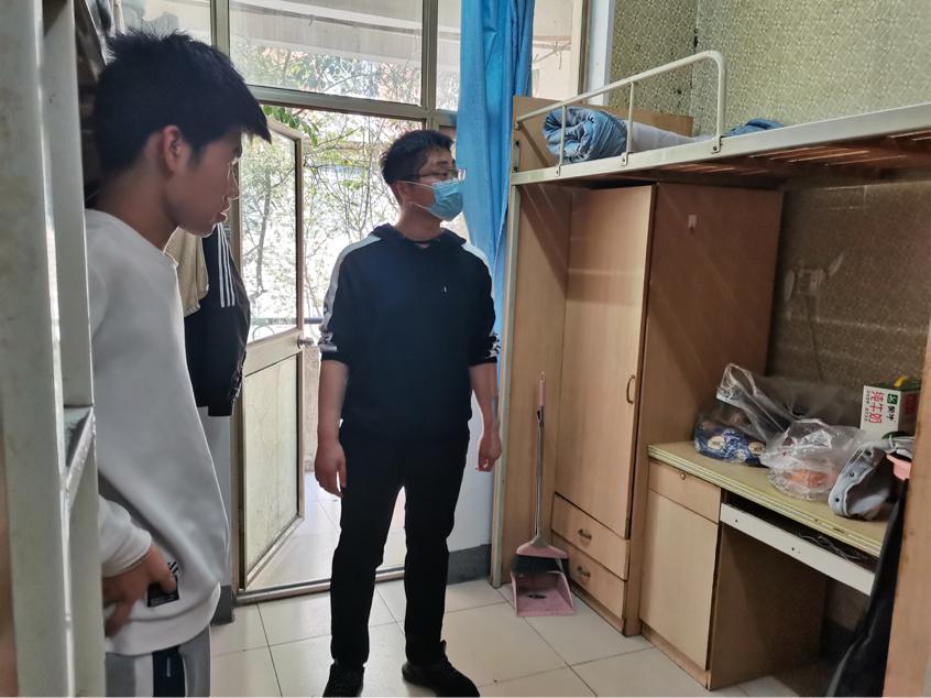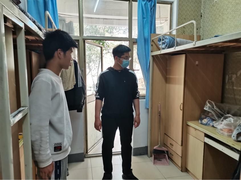 走访过程中,领导老师与同学们亲切交流,详细询问了同学们在这特殊时期的生活需求、学习情况,了解了学生宿舍卫生、消毒和通风情况,并向同学们强调了宿舍卫生和疫情防控重要性。