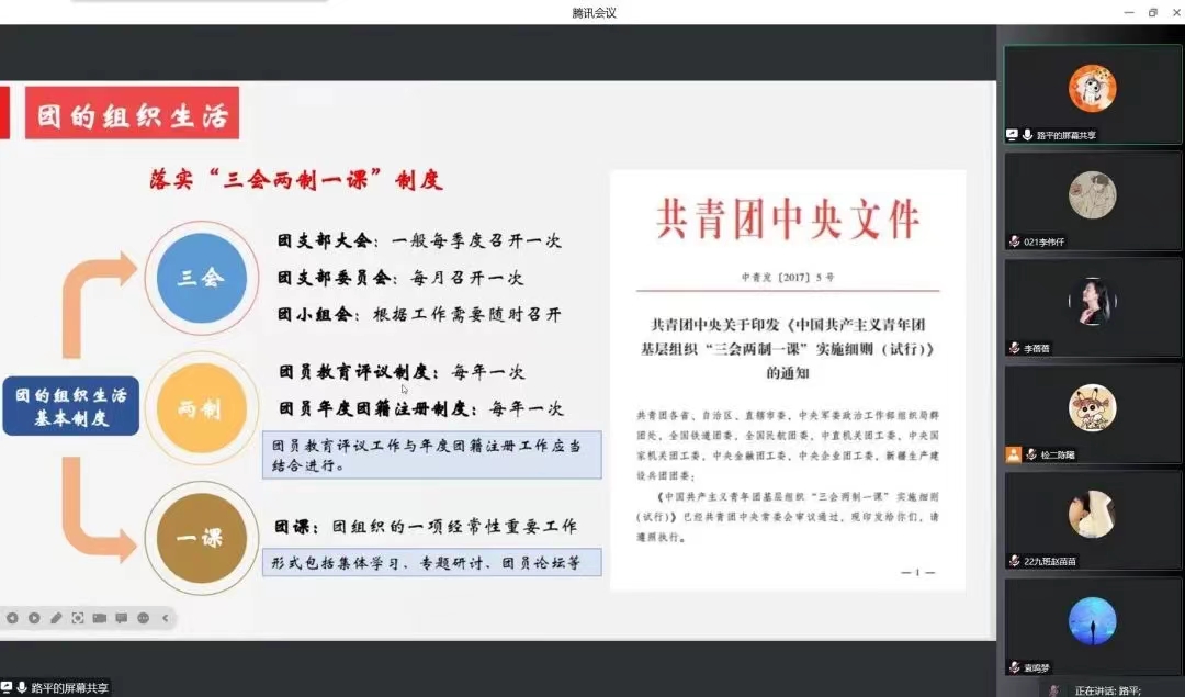 开班仪式后,院团委书记路平为大家讲解了高校共青团工作的相关内容,她从共青团的发展史、组织建构、团员管理、组织生活等方面向同学们进行了详细的介绍。同时,她强调了作为一名共青团员的基本素质和义务,希望各位团员在新时代中锻炼自我,积极向党组织靠拢,牢记自身使命,为中华民族伟大复兴贡献力量。