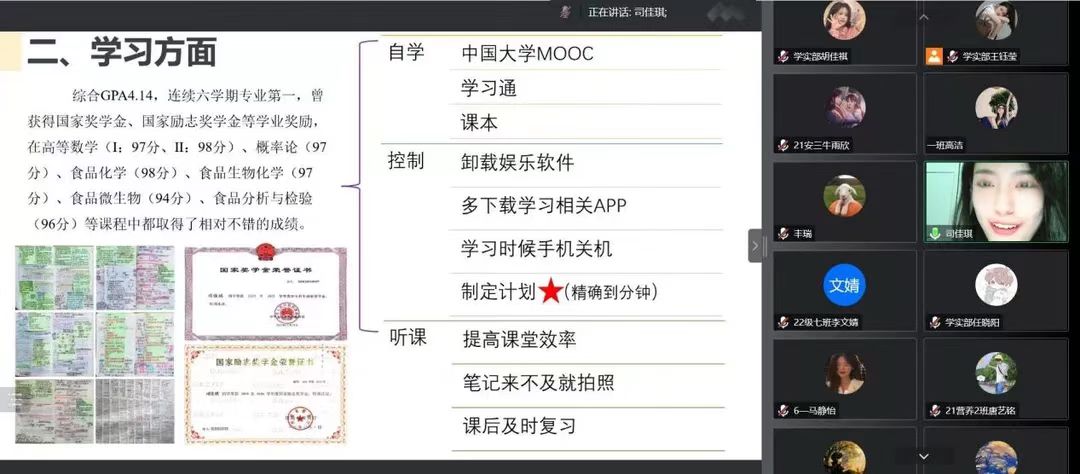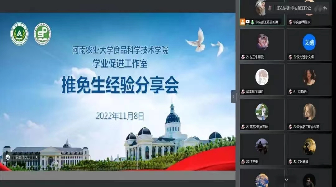 举办学业促进工作室推免生经验分享交流会,特邀学院2019级推免生司佳琪、李中惠、丰瑞为同学们分享经验心得,黄漫