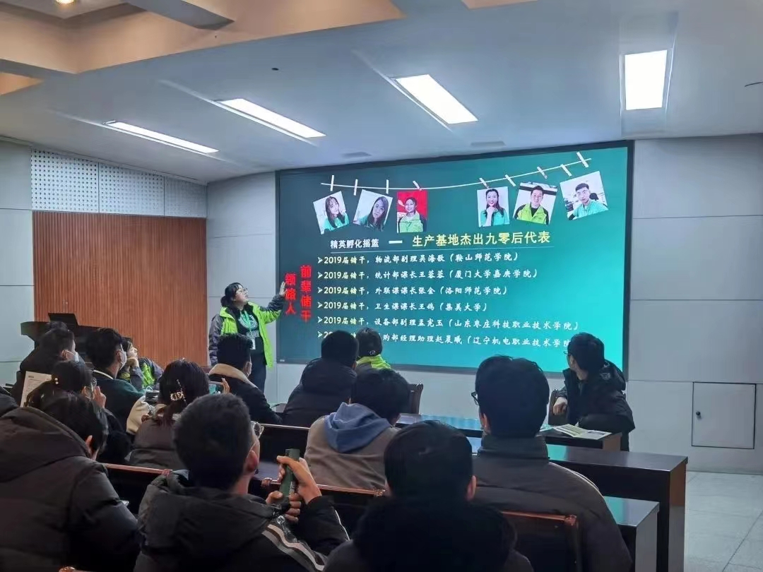 桑海艳通过播放宣传片的方式向同学们介绍了安井集团二十年发展历程、黄漫、经营理念等。她从校招岗位、薪资结构、住宿条件等方面进行详细讲解,加深同学们对安井集团的了解。最后,她希望同学们踊跃加入,为企业发展注入活力。