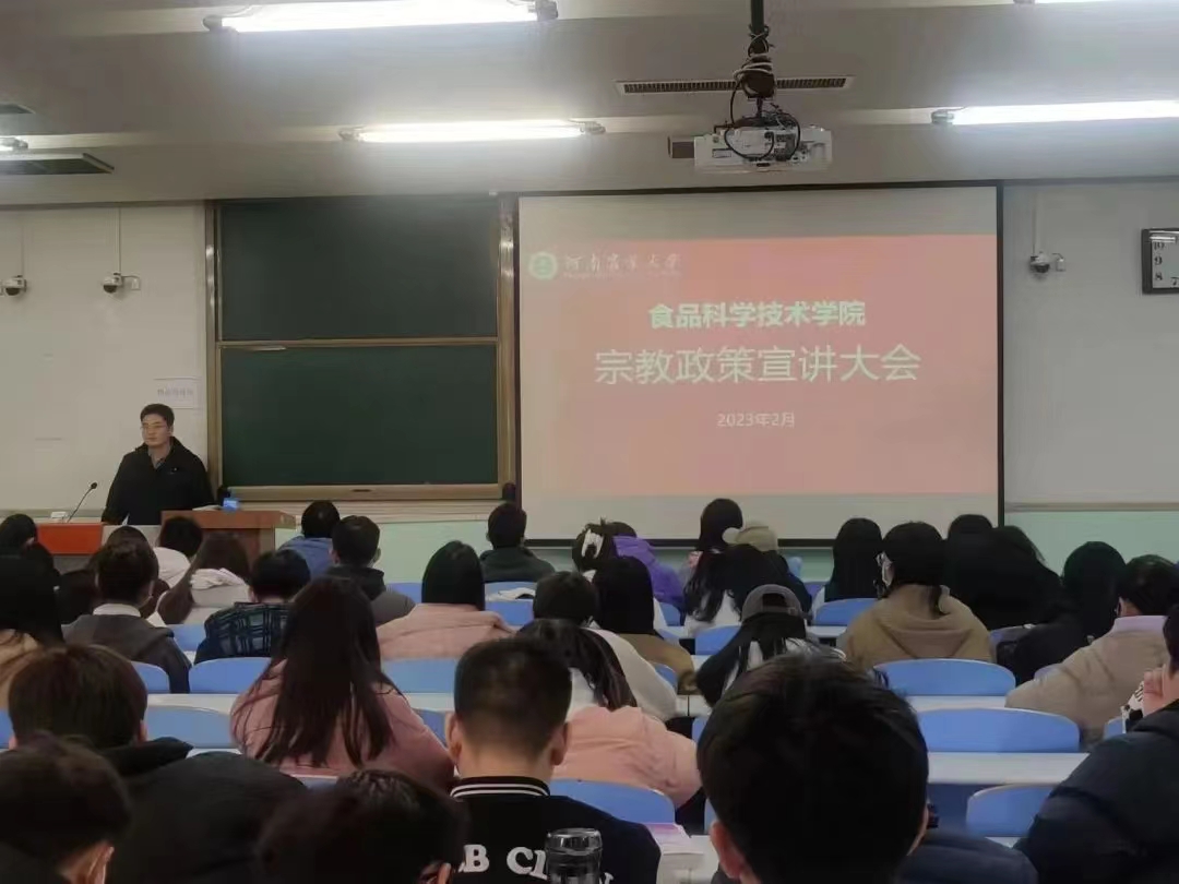 于文化路校区工程楼召开宗教政策宣讲大会,院团委书记路平、院团委副书记陈翔、院辅导员张金龙出席会议,黄漫
