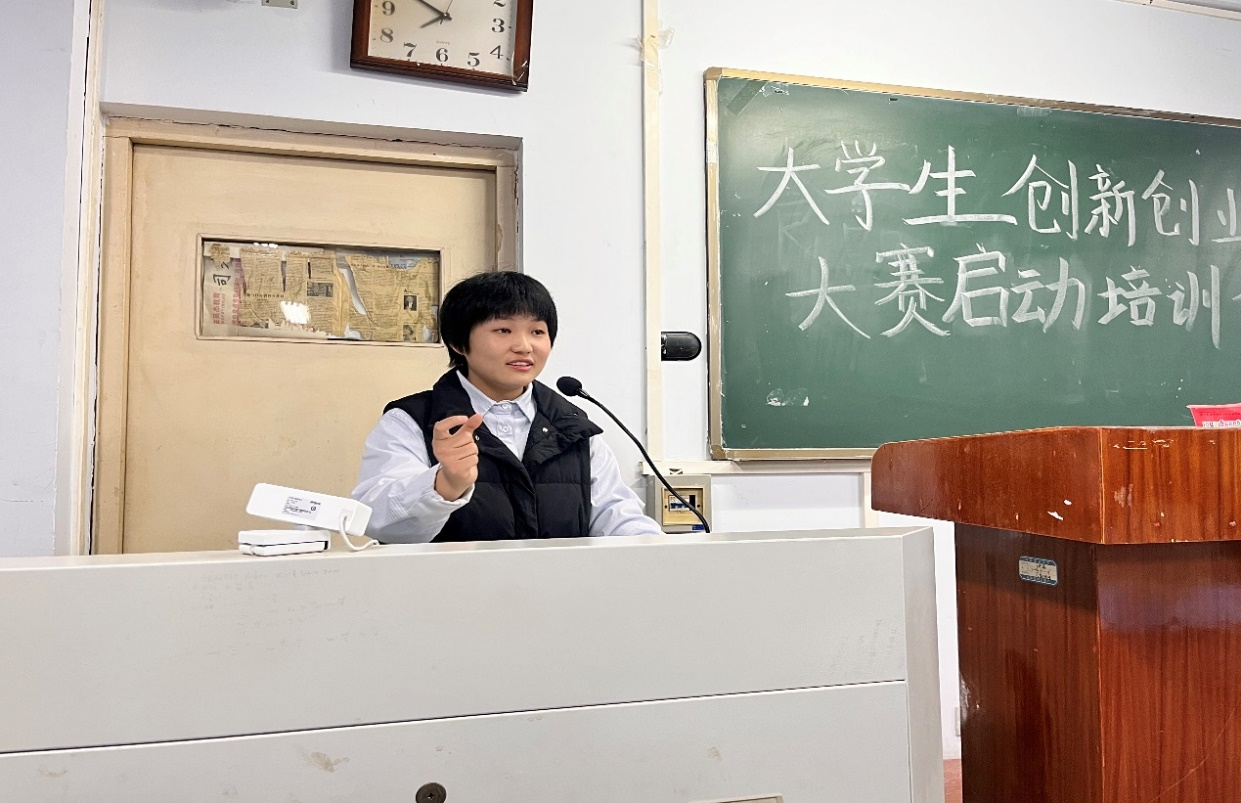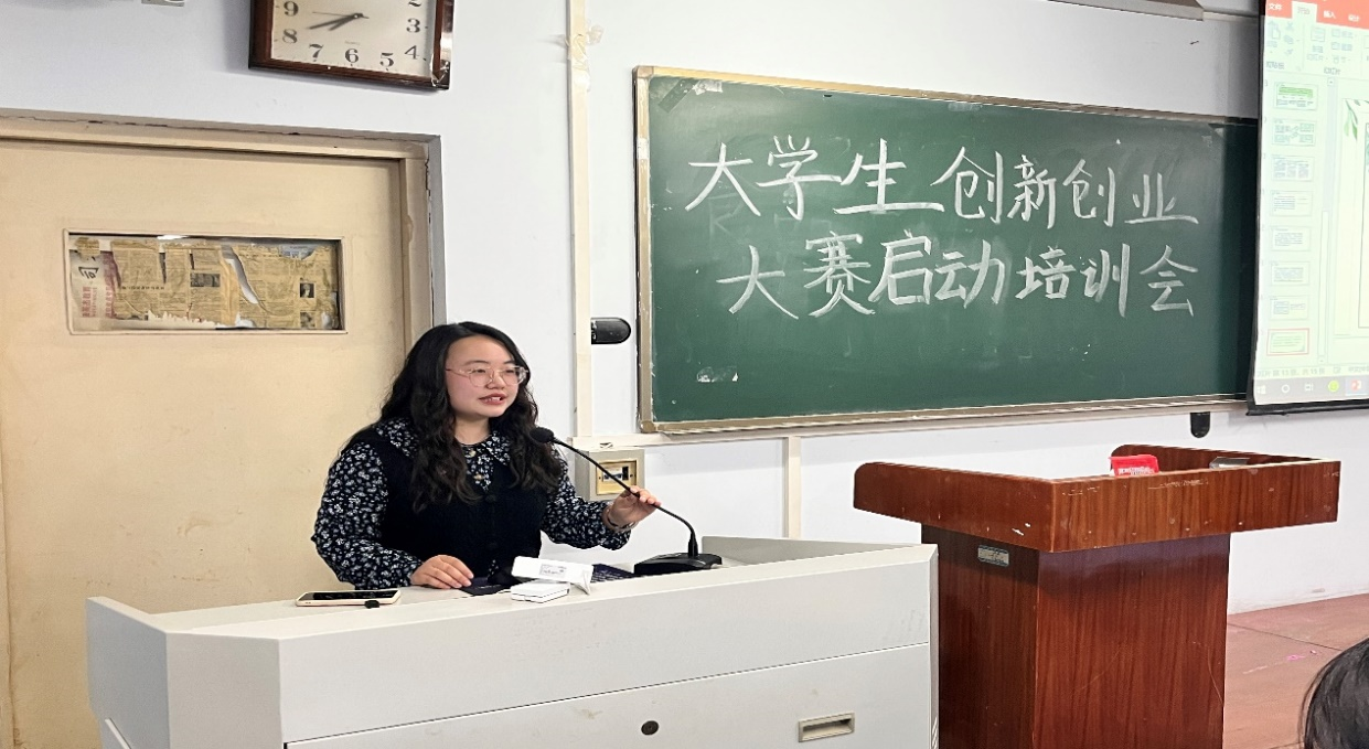 于文化路校区工程楼102开展大学生创新创业大赛启动培训会。本次培训会由19级优秀学生代表朱亚威、梁梦莹主讲,黄漫