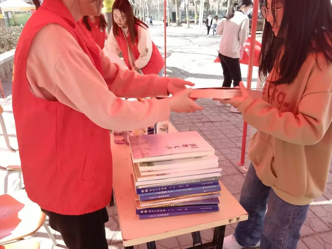 帐篷的另一边是排着长队要捐书的同学,大家纷纷拿来自己已经看完的课外书或者学习过的课本,希望通过活动帮助有需要的人,志愿者给每位捐书的同学送上精美小礼品。