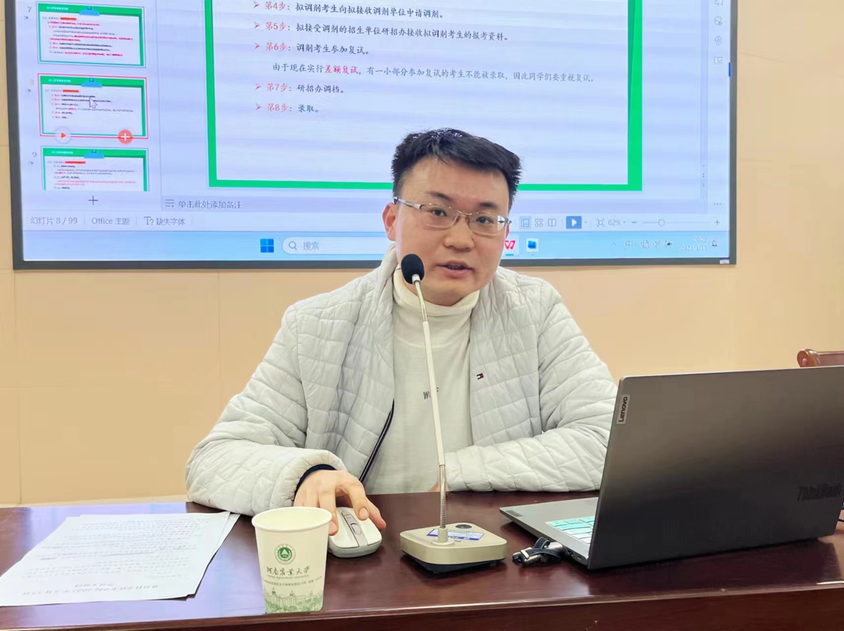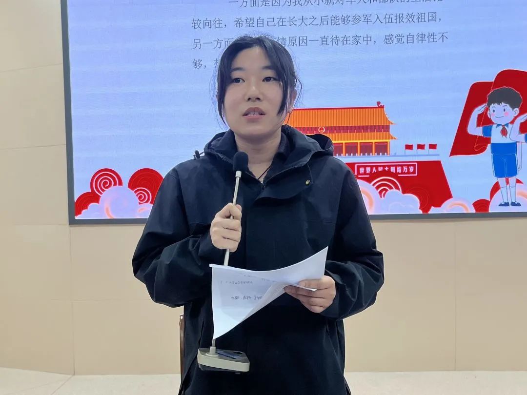 王晨从入伍前的准备、入伍期间的训练、精彩的军旅生活三个方面向大家分享了自己的参军经历及收获,向同学们介绍了2023年征兵工作的预征对象、身体要求等情况,并就应征入伍学生就业、经济补助等方面政策进行了详细的解释说明,鼓励毕业班同学能够踊跃应征报名,积极投入到军旅生活中,为国防事业贡献力量,开创美好人生。