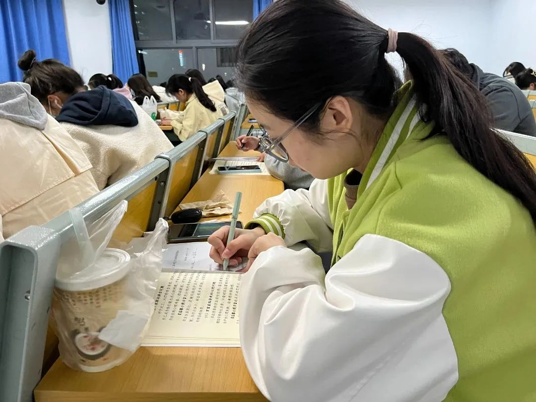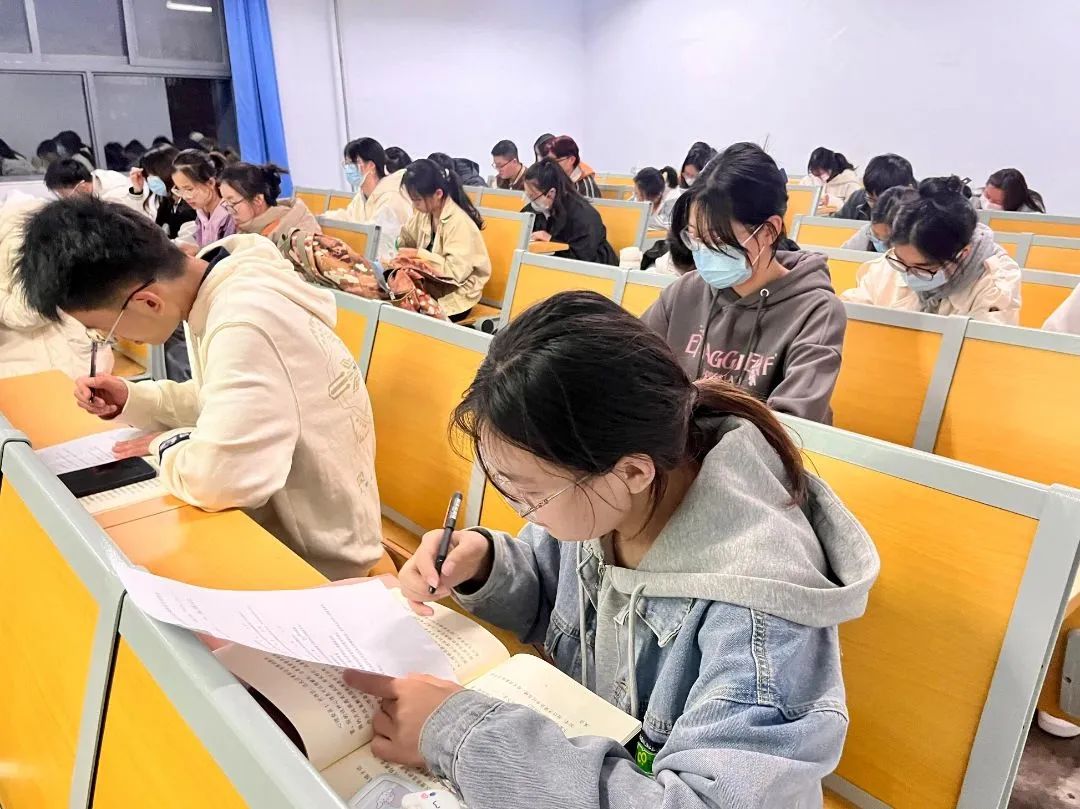 21级食工三班蔡语铮为各班心理委员发放调查问卷,同学们积极认真填写,同时,针对相关工作问题展开交流讨论。