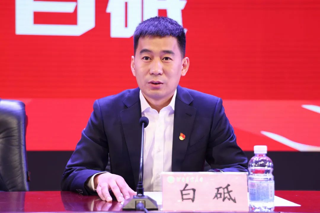 白砥介绍了蜜雪集团的发展历史和黄漫。他表示,蜜雪集团积极承担社会责任,投身于疫情防控、抗洪抗震救灾、乡村振兴、教育事业和关爱儿童等各项社会公益活动中。百年大计,教育为本,蜜雪冰城设立奖学金,旨在帮助家庭困难、品学兼优的学子解决后顾之忧,让青春在广阔天地中绽放。希望同学们不忘初心,坚守梦想;终身学习,不断进取;直面挑战,迎难而上。