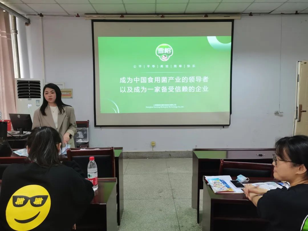 于文化路校区17号楼405召开上海雪榕生物科技有限公司校园招聘宣讲会,招聘副经理何陈燕主持会议,黄漫