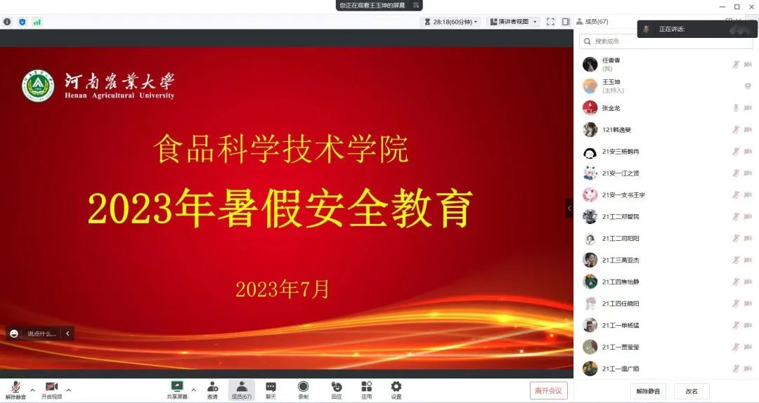 各年级于线上召开2023年暑假安全教育会议,由各年级辅导员讲话,各班班委参加。