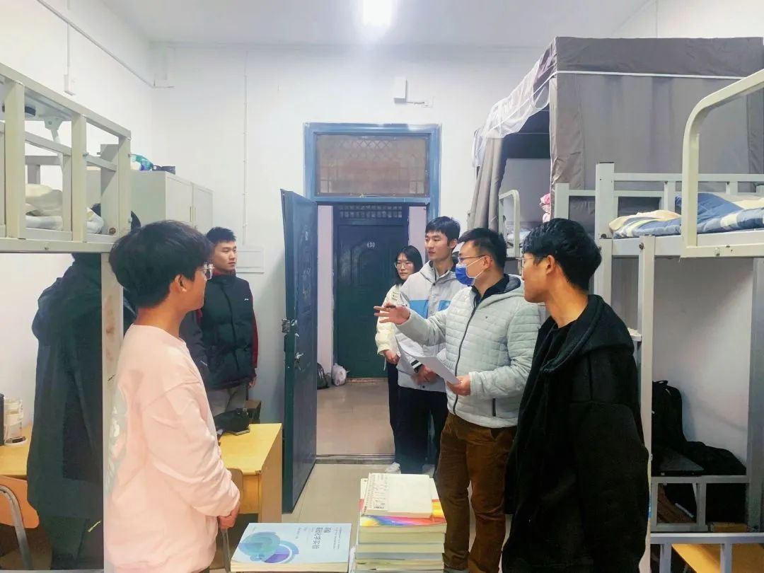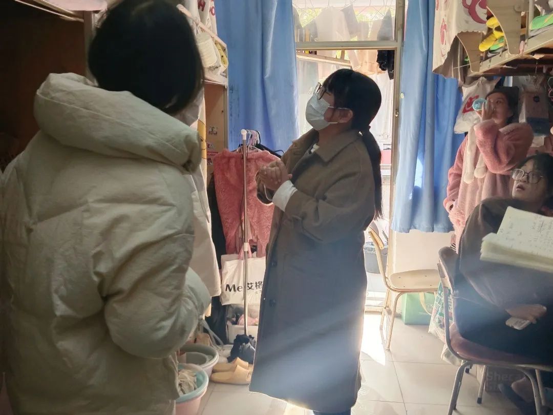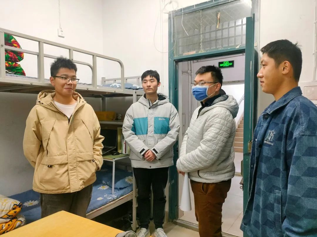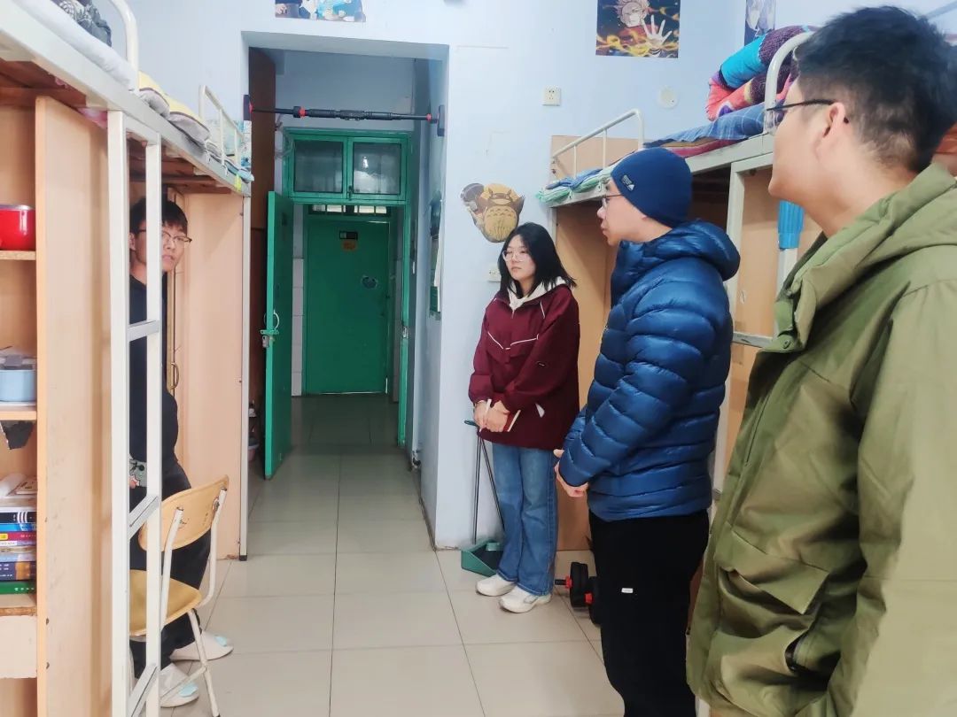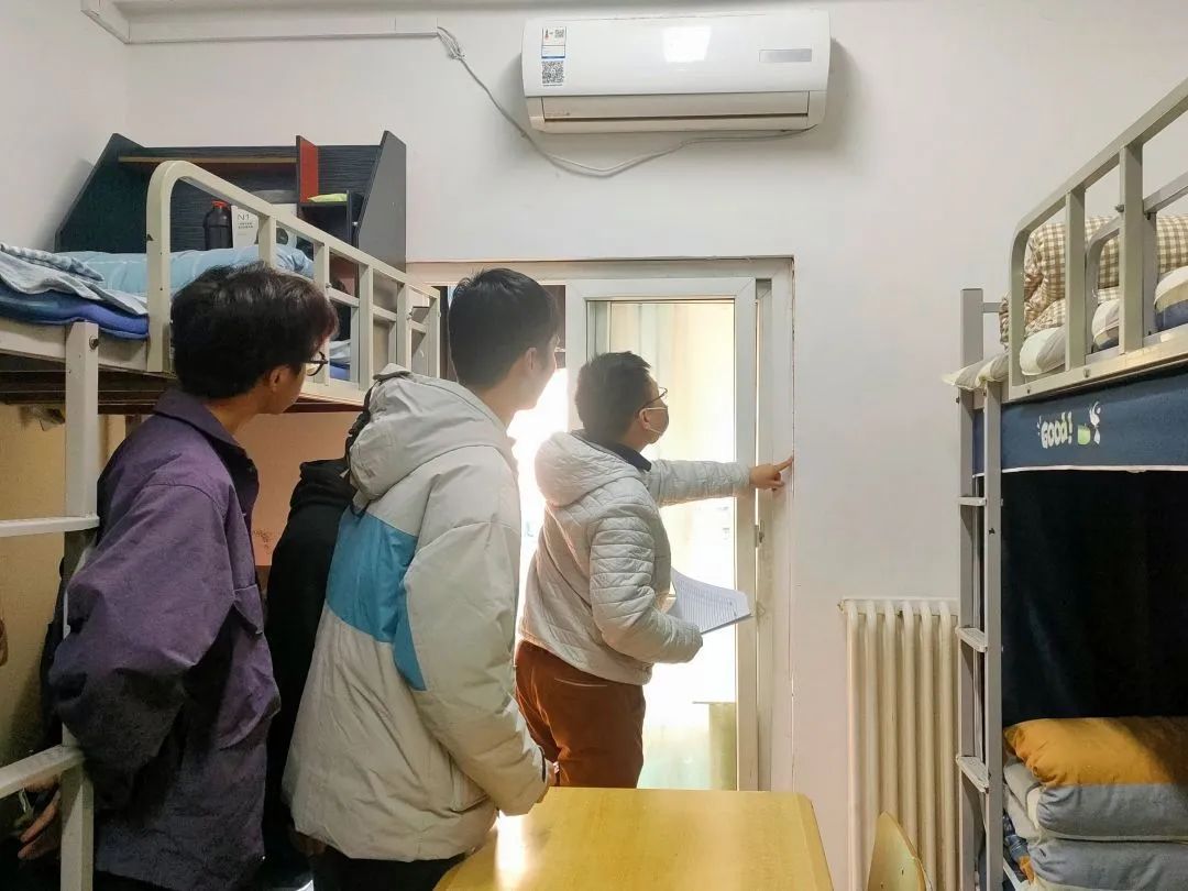 走访过程中,老师们深入学生宿舍,仔细检查宿舍暖气压力、电器设备,提醒同学们要及时排查和整改各类安全隐患,落实安全措施,叮嘱同学们一定要严格遵守学校制定的相关管理制度,坚决不使用任何违规电器,做到安全用电。学生会生保部成员对于暖气不太热、水电有问题的宿舍进行了详细记录,并积极上报维修,同学们要每天对宿舍进行通风,保持干净整洁的卫生环境。此外,学院领导老师热切关心同学们的学业与身体状况,询问同学们最近的压力,提醒大家天冷加衣,并耐心解答同学们关于学业和生活等方面的疑惑,为大家排忧解难。