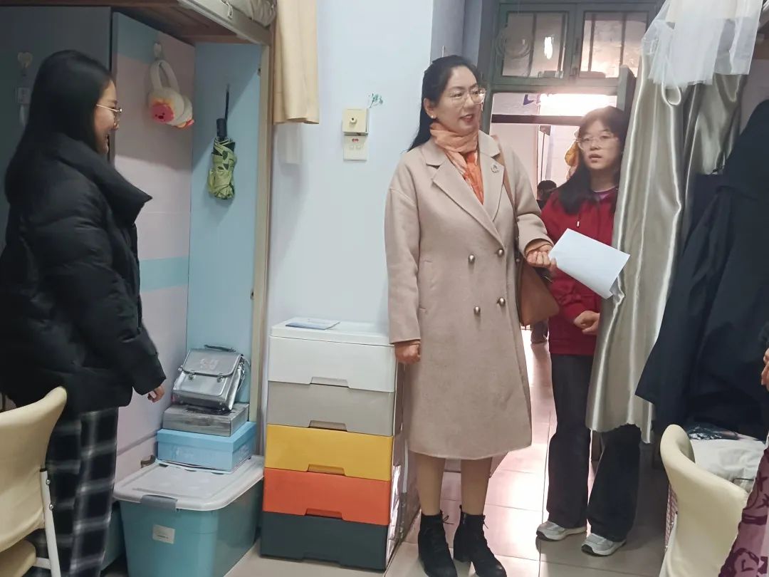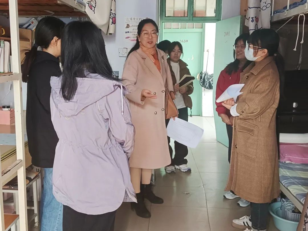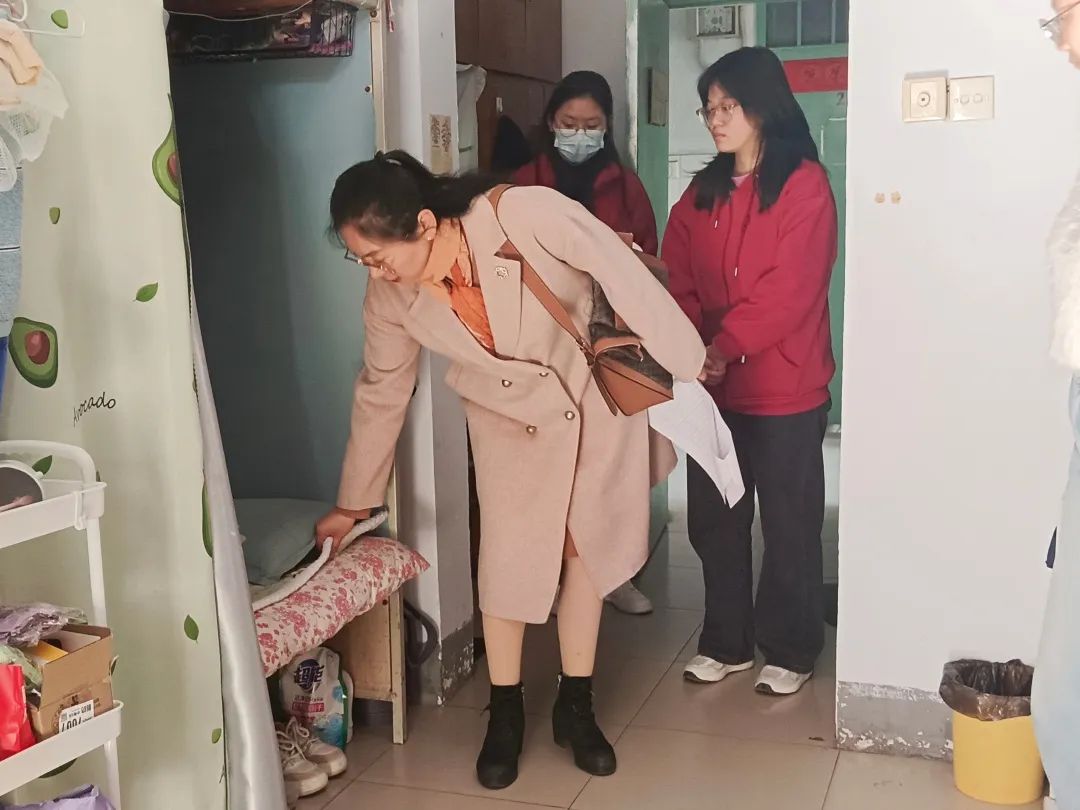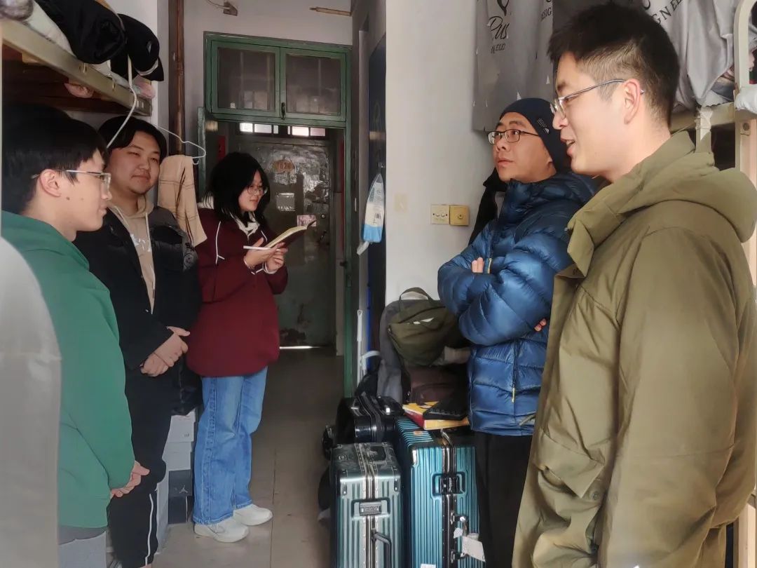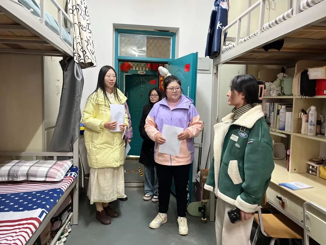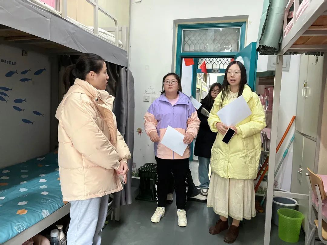 走访过程中,老师们深入学生宿舍,仔细检查宿舍暖气压力、电器设备,提醒同学们要及时排查和整改各类安全隐患,落实安全措施,叮嘱同学们一定要严格遵守学校制定的相关管理制度,坚决不使用任何违规电器,做到安全用电。学生会生保部成员对于暖气不太热、水电有问题的宿舍进行了详细记录,并积极上报维修,同学们要每天对宿舍进行通风,保持干净整洁的卫生环境。此外,学院领导老师热切关心同学们的学业与身体状况,询问同学们最近的压力,提醒大家天冷加衣,并耐心解答同学们关于学业和生活等方面的疑惑,为大家排忧解难。