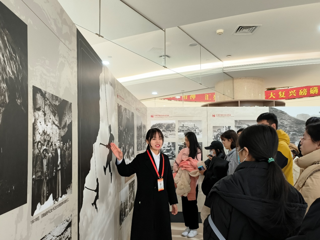 红旗渠展览伊始,讲解员通过对老照片的讲解,向同学们展示了红旗渠开凿的艰难过程和其中的感人故事,并赞扬了中国人民在艰苦环境下的顽强意志和无私奉献精神。同时,她向同学们讲述了河南安阳如今的发展状况,让大家体会到前人创造出如今安逸的条件的不易与艰辛。