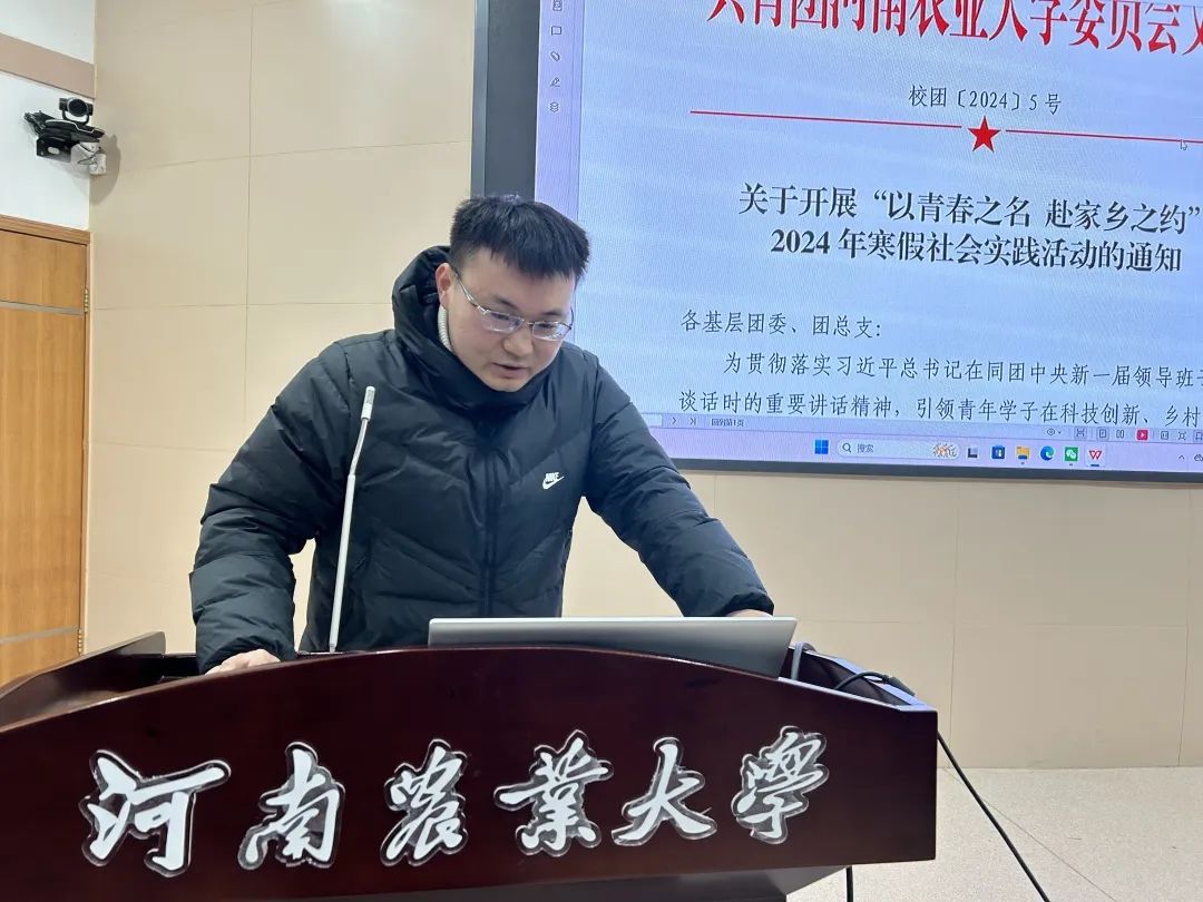 会议伊始,陈翔向同学们详细地介绍了社会实践活动内容、活动形式与活动要求,帮助同学们认识社会实践的目标和任务,确保活动的顺利进行。他强调,在实践中要依托学校学科优势和专业特色,紧紧围绕巩固和发展乡村振兴成果,促进乡村振兴服务,讲好乡村振兴故事。他鼓励同学们将理论知识与实际操作相结合,积极投入到社会实践中去,提高自身的综合素质和能力,弘扬爱国主义精神,培养家国情怀,为社会的发展贡献自己的力量。
