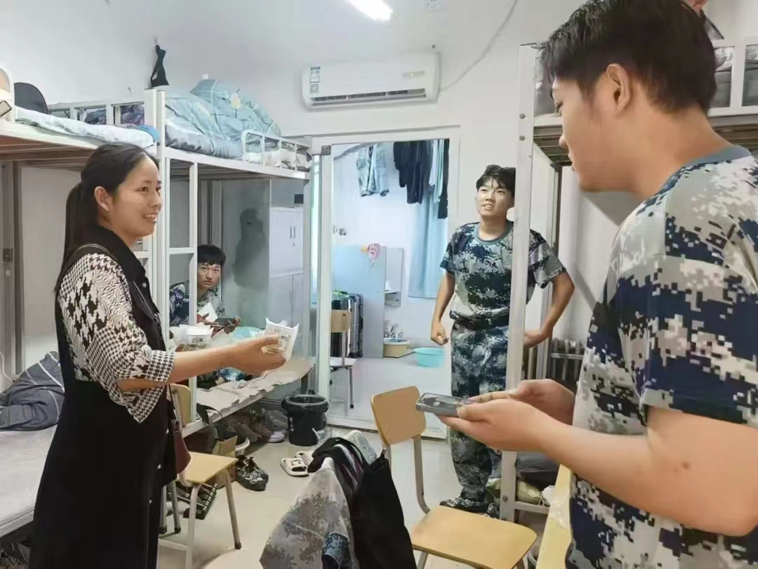 在走访过程中,各班班主任一边分发月饼,一边为新生送去诚挚的中秋节日问候。他们询问了新生们在军训中的感受,鼓励新生要坚强勇敢,战胜困难。同时,他们也提醒新生要注意身体,不要过度劳累,要保持良好的状态。新生们接过月饼,感受到了浓浓的节日氛围和学院的关怀,他们纷纷表示,班主任的关心与鼓励让他们倍感温暖,也让他们更加珍惜这次军训的机会,努力锻炼自己,为学院争光。