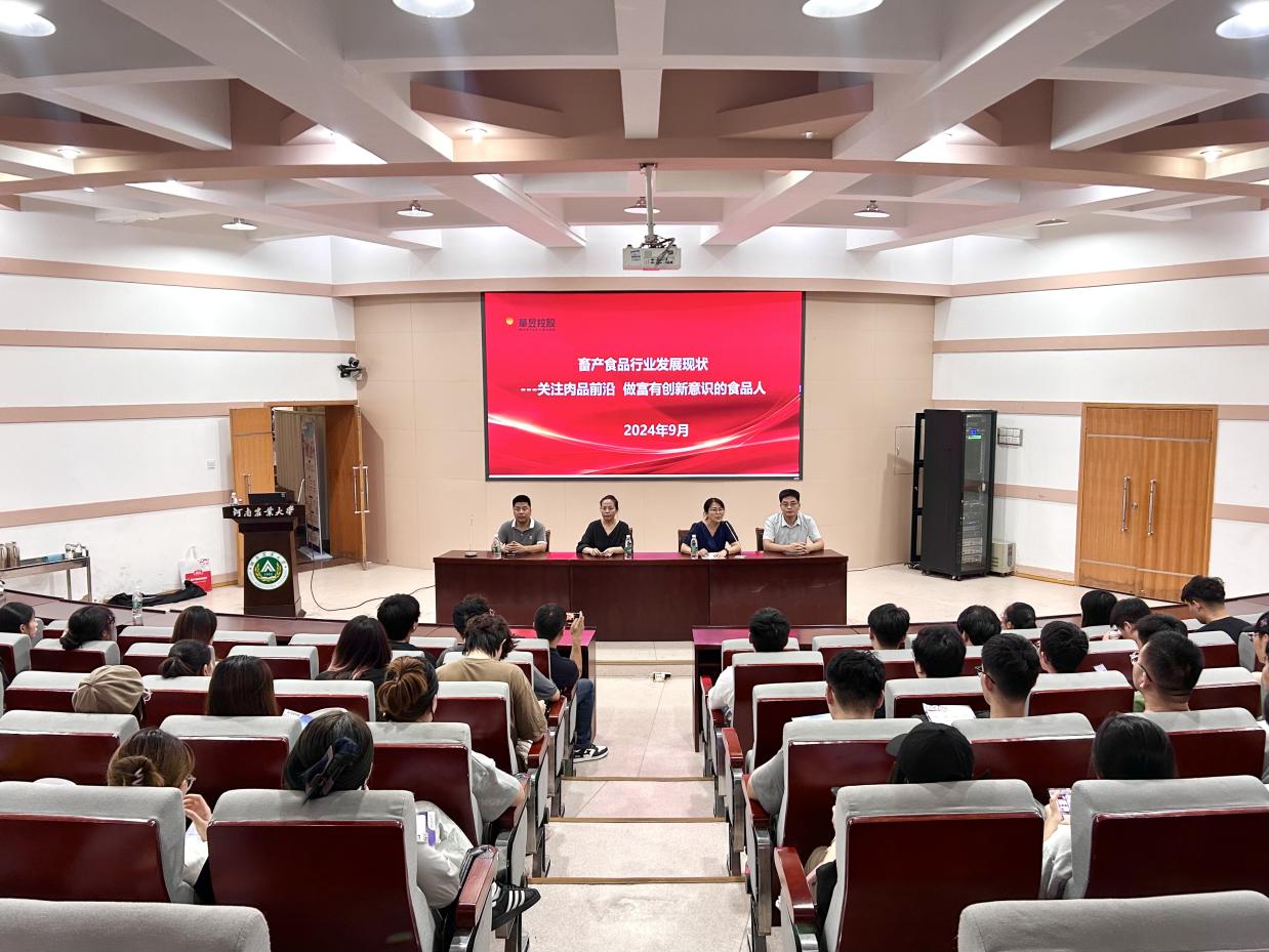 特邀河南众品食业股份有限公司研发总监王锐,于文化路校区三百人报告厅举办招聘宣讲会,学院毕业年级学生参加。