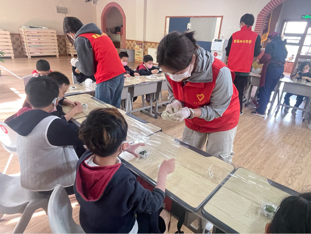 在实践环节,志愿者们身着统一服装,分组指导小朋友揉面、包馅、塑形。豆沙的绵甜、芋泥的醇香、蛋黄肉松的咸鲜,三种创新口味吸引孩子们踊跃尝试。活动现场欢声不断。