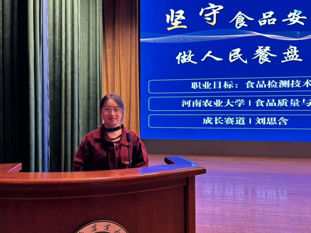 随后,河南省第二届职业规划大赛铜奖获得者、2022级食品质量与安全专业刘思含同学结合自身经验,围绕“认清自我、明晰目标、制定计划”三大核心,为学弟学妹带来详实而生动的分享。她细致讲解了职业规划的具体方法与实施路径,并就大家普遍关心的未来发展方向问题作了耐心解答,现场互动积极,反响热烈。