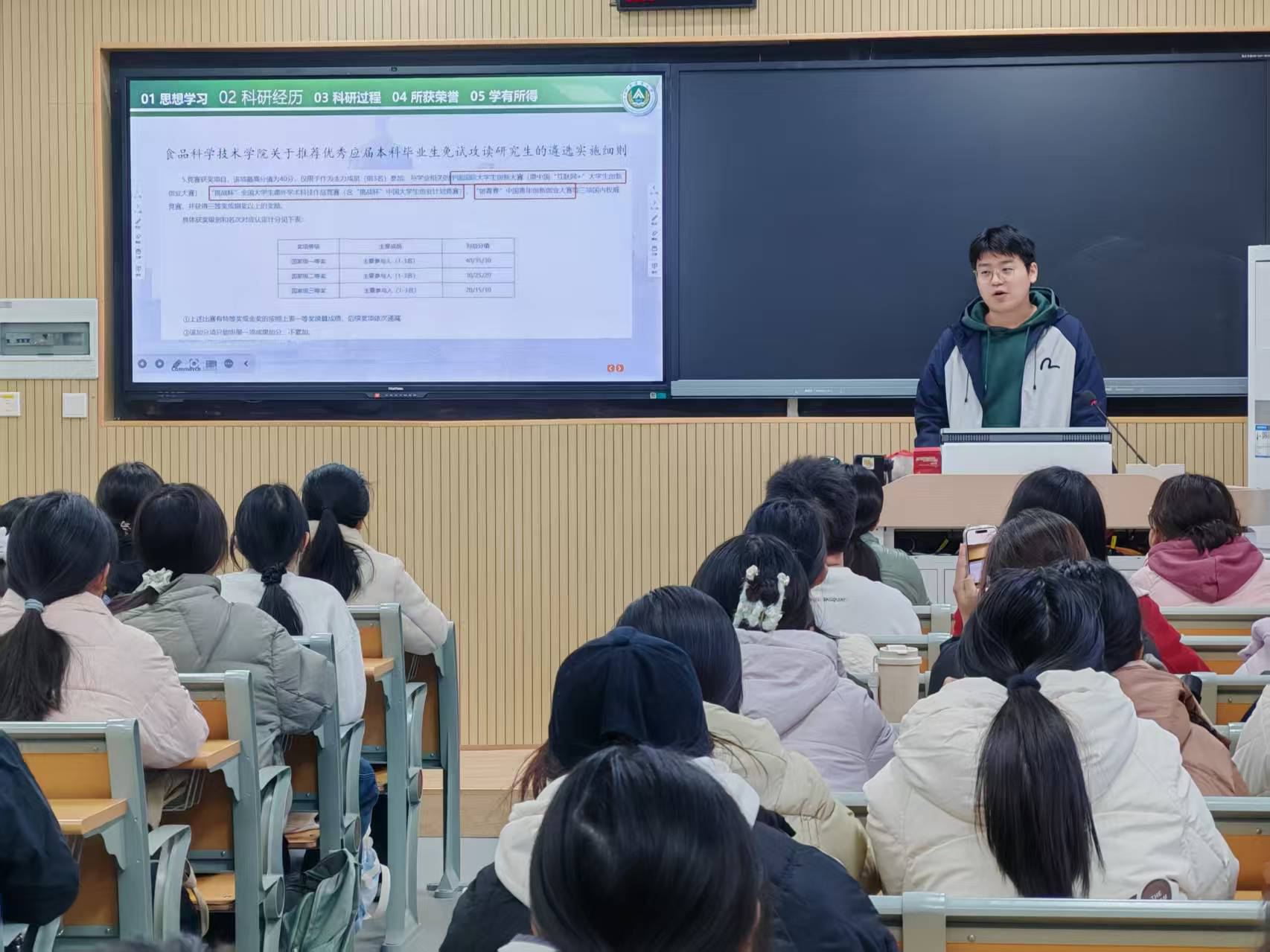 分享环节中,王议满详细介绍了从组建团队、市场调研到完成路演的完整参赛流程,并强调成功的关键在于平衡学业、积极主动、具备专业技能以及保持耐心和毅力。周楷轩指出参加科研竞赛对保研、评优和能力提升有重要价值,但需要付出大量时间和精力。参赛者应扎实打好专业基础,明确团队分工,并保持坚持到底的心态才能取得成果。