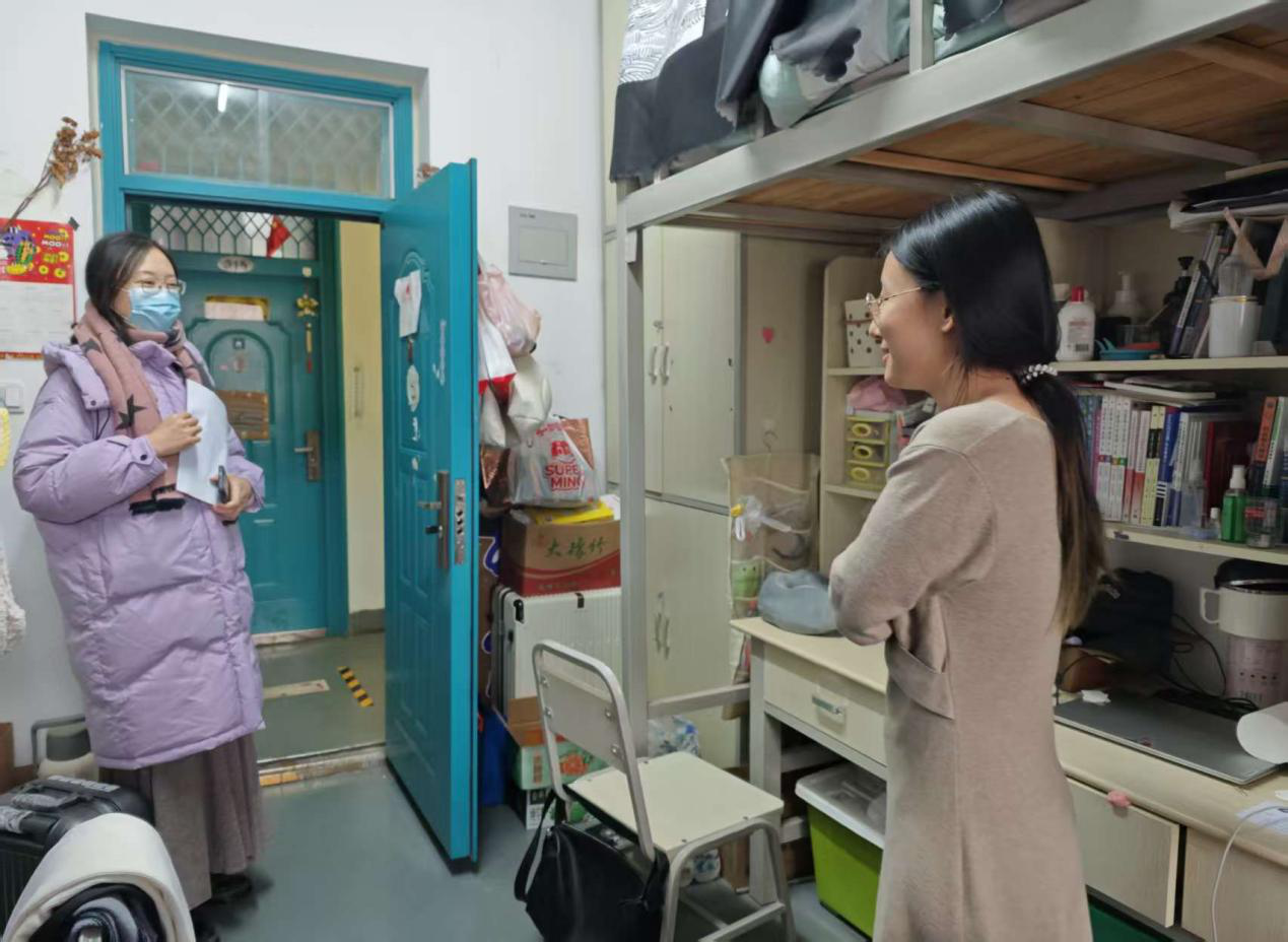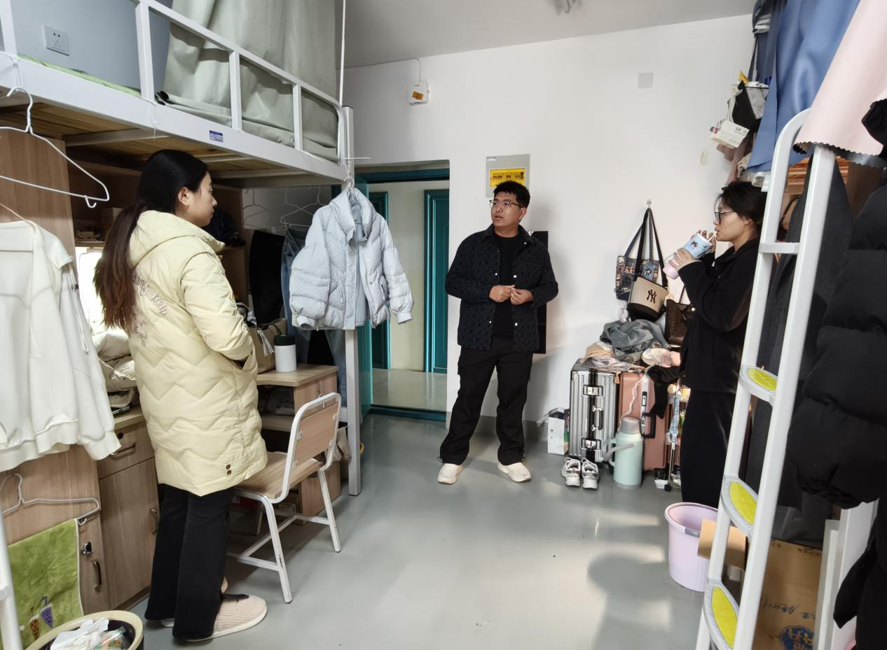 12月9日至12日,院团委书记路平、党委组织员陈翔、团委副书记张金龙、辅导员喻颢如、张泽群、银峰深入各年级宿舍,开展“安全无死角、卫生全覆盖”的双重排查。在排查中,老师们针对上次发现的问题,查看同学们的整改情况,并强调宿舍严禁使用违规大功率电器和食品垃圾要及时清理,引导大家养成整洁、健康的生活习惯。排查期间,老师们格外关注考研学生和四六级考生的备考状态与生活需求,详细询问复习进度、冬季供暖适配情况,叮嘱大家合理安排作息、劳逸结合;对于全体同学期末备考,老师们给出针对性建议,提醒大家要制定科学复习计划,同时着重强调要诚信考试,引导大家树立诚信应考意识,守住学业底线。此外,老师们还主动倾听同学们备考期间的心理压力与生活困难,耐心开展考前心理疏导,缓解焦虑情绪,让严格排查与暖心关怀同步传递,助力同学们轻装上阵迎战考试。