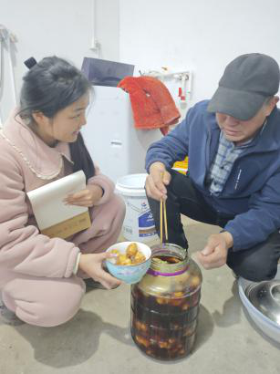 24级食工一班王姝婷回到老家,关注春节传统美食的保鲜问题。想用专业知识帮乡亲们解决枣馍、炸丸子易变质的困扰,实践中却发现自己在被“教”——讲面团发酵时,奶奶一块盖布既保温又保湿,恰好契合发酵原理;讲咸菜腌制时,乡亲们“无油无水、适量用盐”的老经验,比课本更实用。这场科普,是输出,也是学习。
