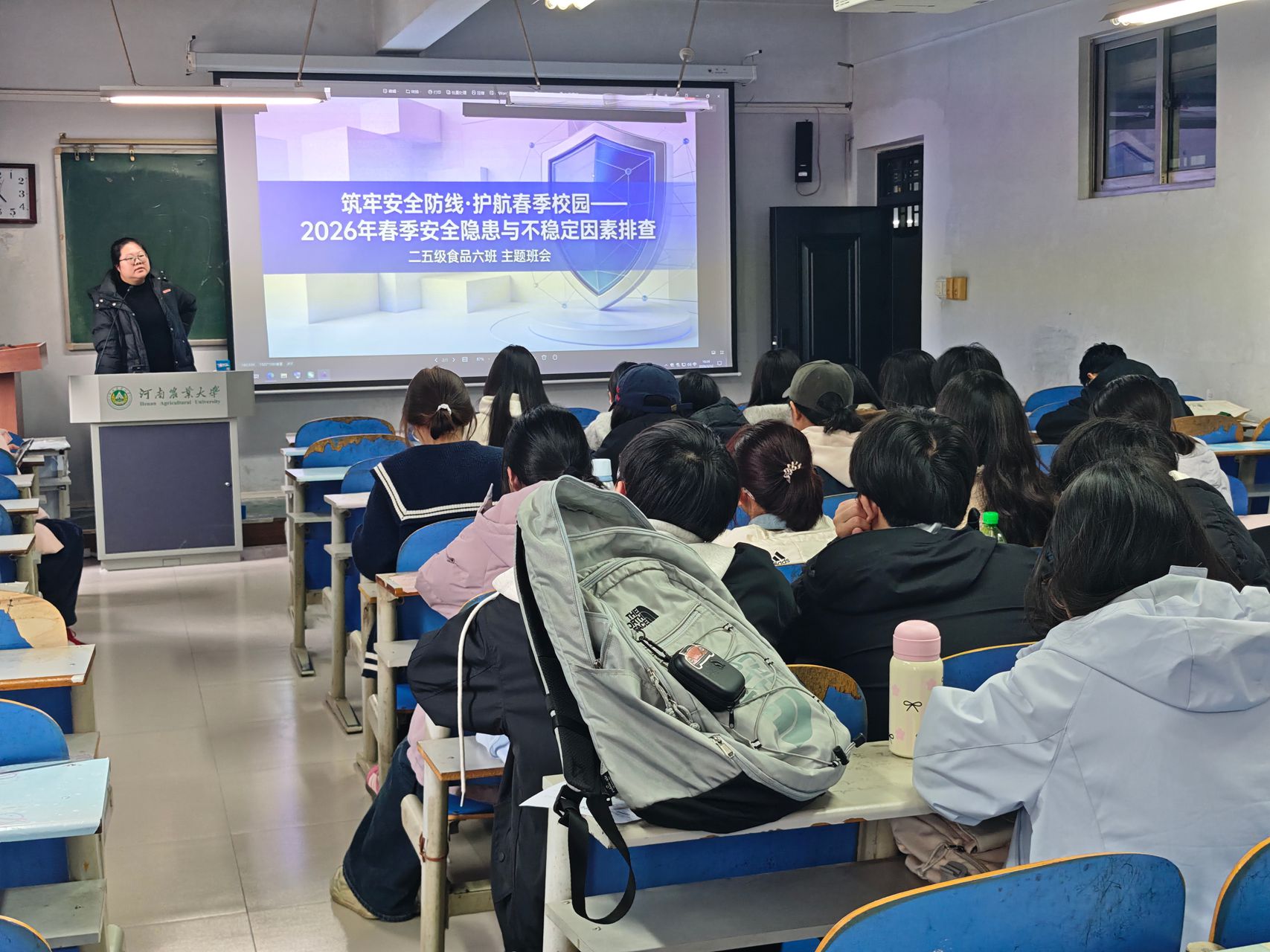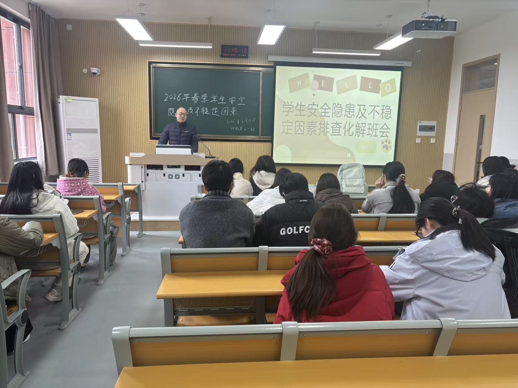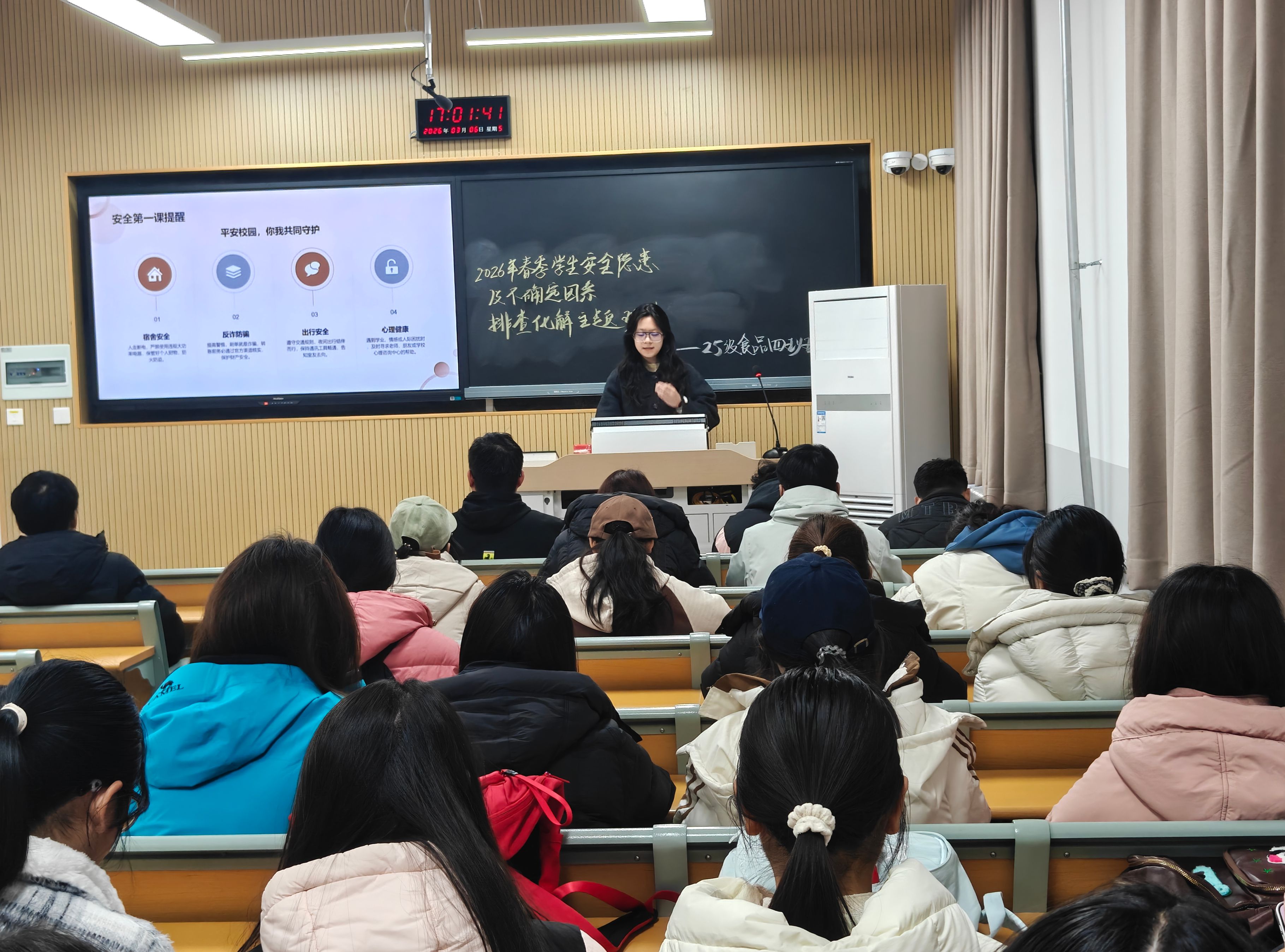 各学生班陆续组织开展春季开学安全主题班会,围绕财产安全、人身安全、日常管理、宿舍消防等重点领域,上好新学期安全“第一课”。