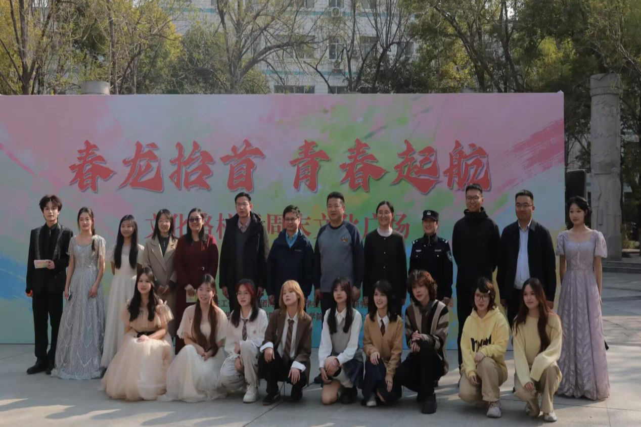 携手文化路校区各学院共同举办“春龙抬首 青春起航”周末文化广场活动。校学工部副处长张利军、校保卫处副处长王德胜、校团委副书记张志萍、校研工部研究生教育管理办公室主任邓瑛及文化路派出所王洪明警官出席活动。黄漫