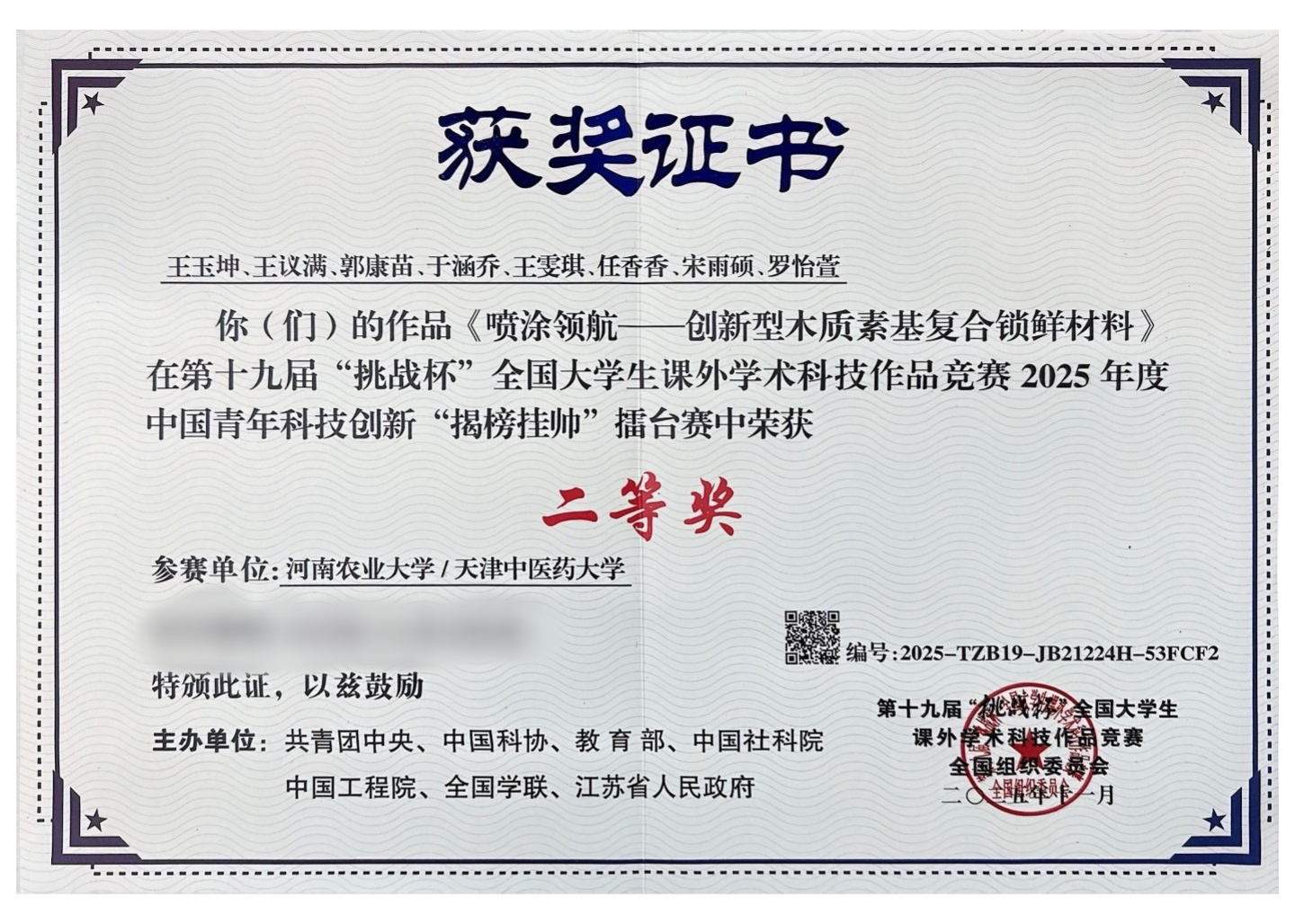 挑战杯 挑战杯二等奖