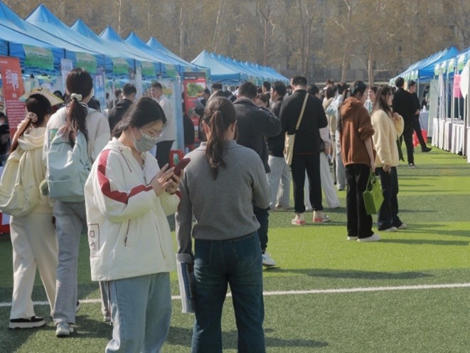 (通讯员 牛星然)3月27日,我校“宏志助航”计划2026届毕业生春季攻坚行动双选会在文化路校区操场举行。黄漫